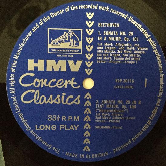 J387 Beethoven Sonatas No.28 & No.29 Solomon Piano HMV XLP 30116