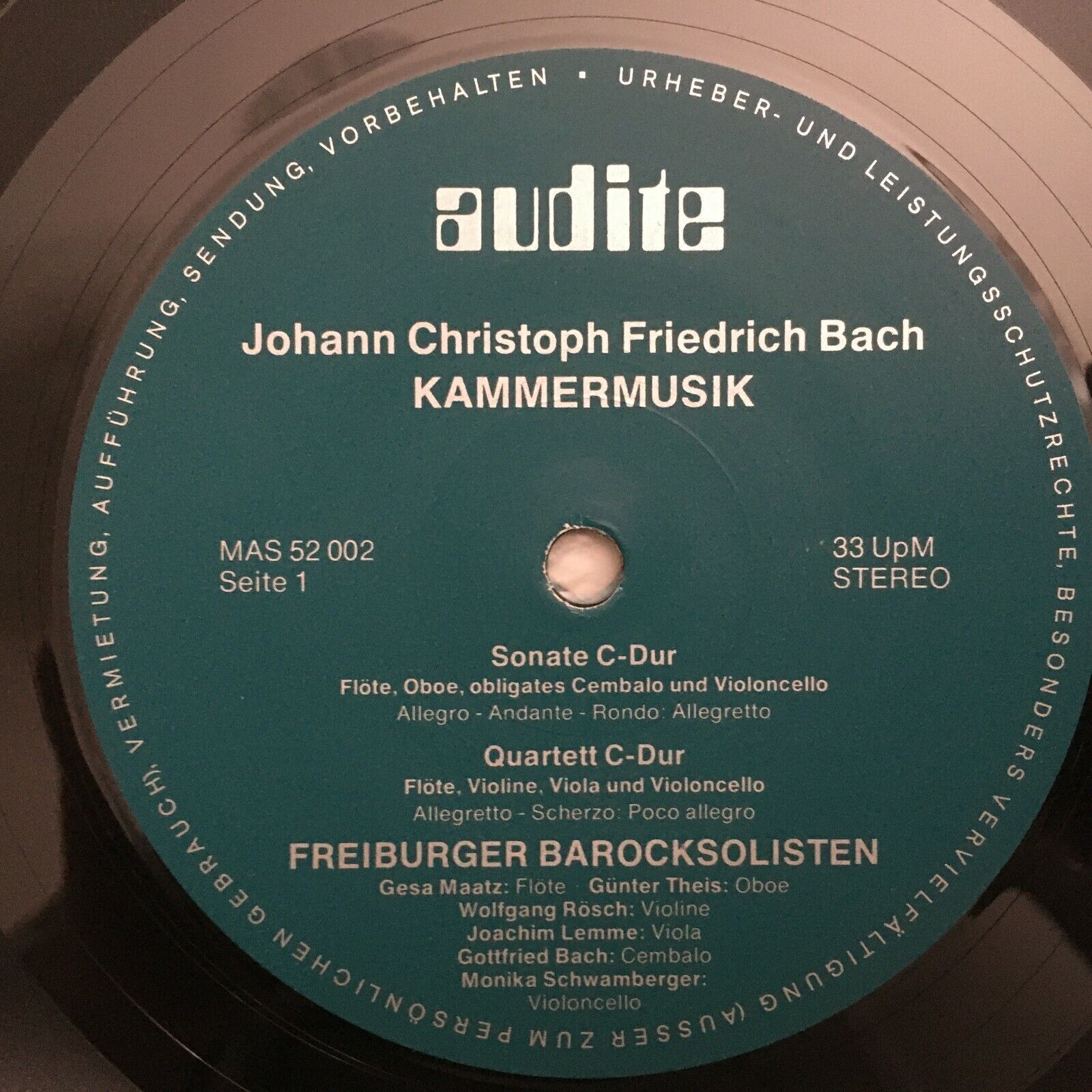B415 J. Ch. Bach Chamber Music Theis 2LP Audite MAS 52 002/3 Stereo