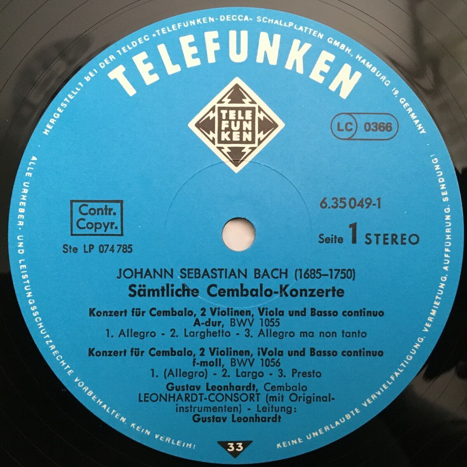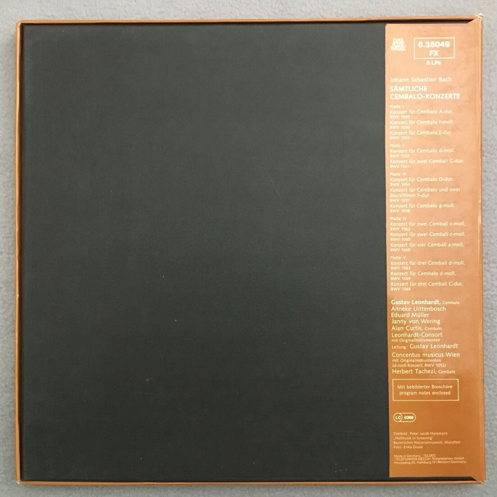 C012 Bach Complete Harpsichord Concertos Leonhardt 5LP Telefunken 6.35049 Stereo