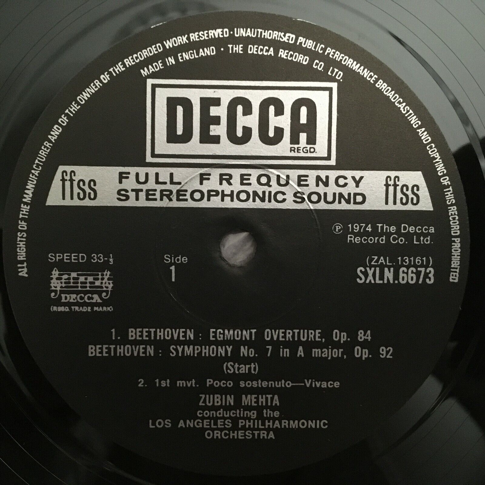 V265 Beethoven Symphony No.7 Mehta DECCA SXLN 6673 Stereo