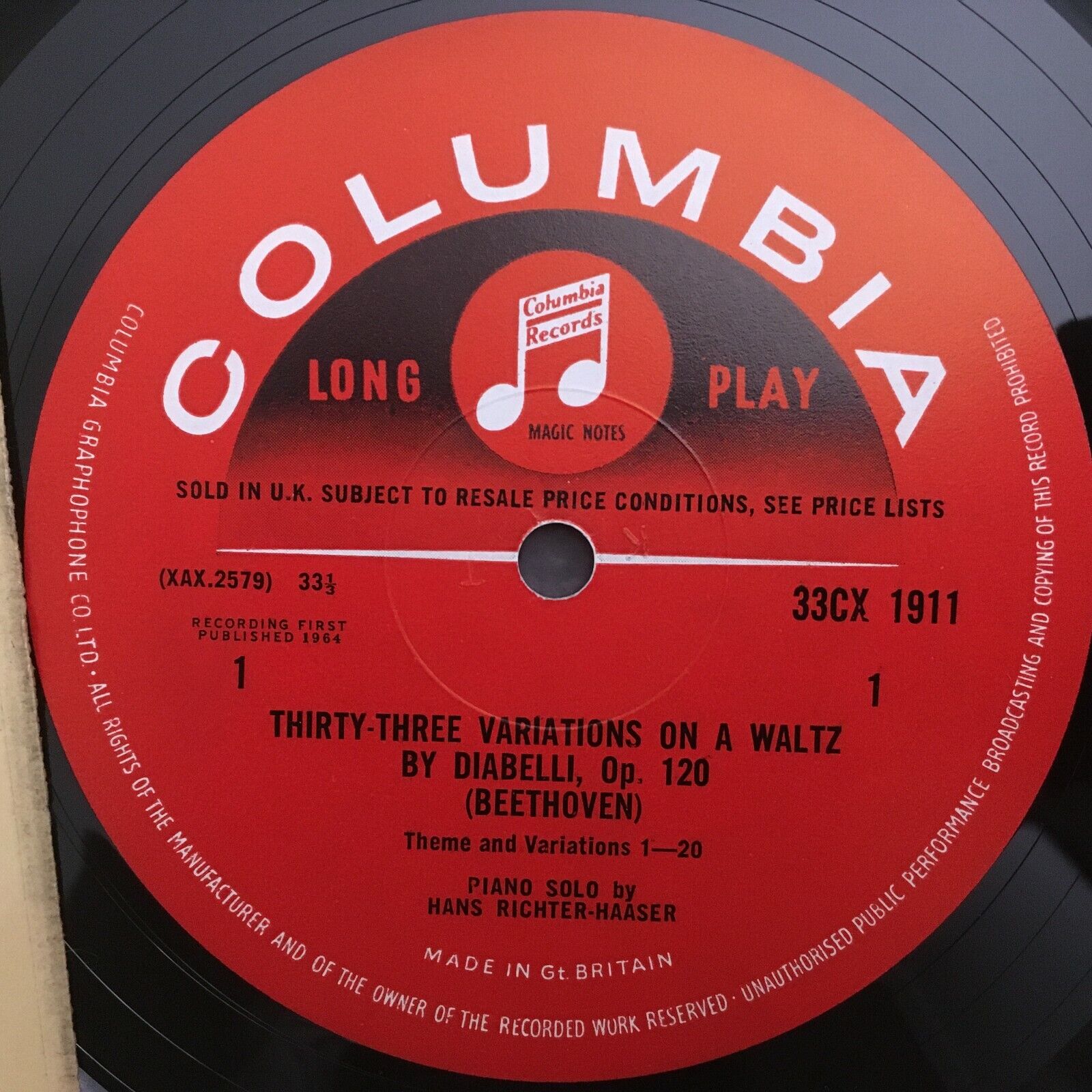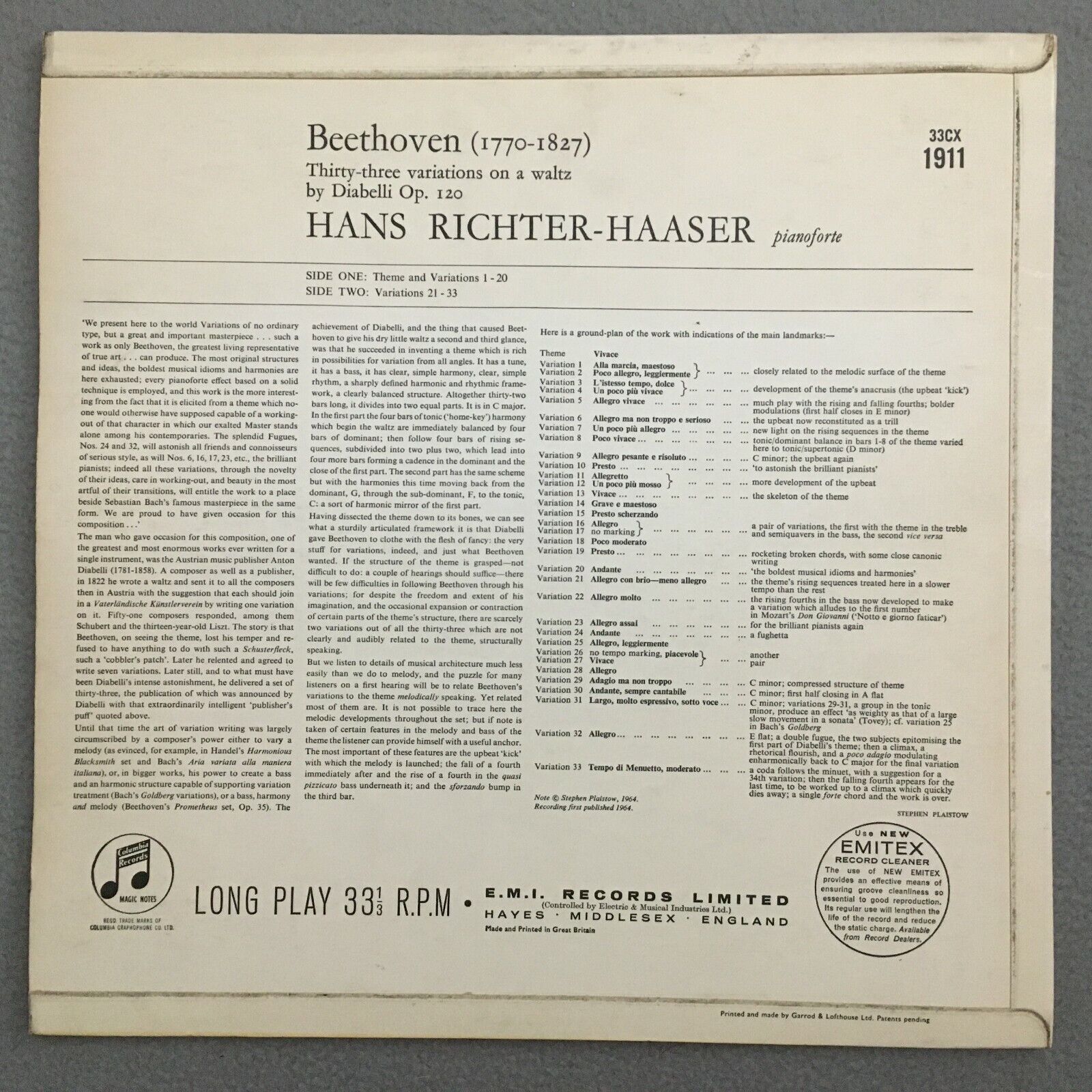 V266 Beethoven Diabelli Variations Richter-Haaser Columbia 33CX 1911