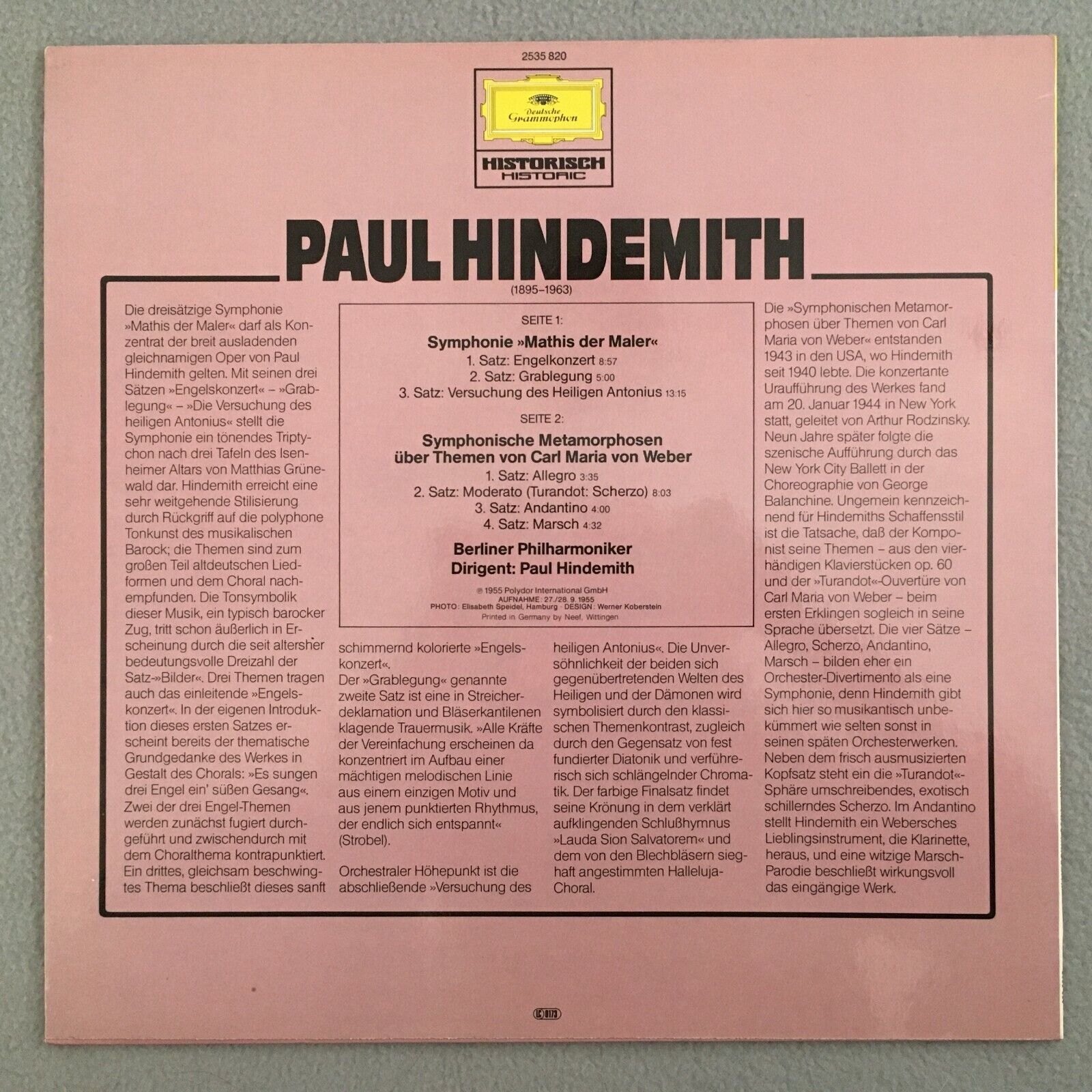 V274 Hindemith Symphony Symphonic Metamorphoses BPO DGG 2535 820 Stereo PROMO