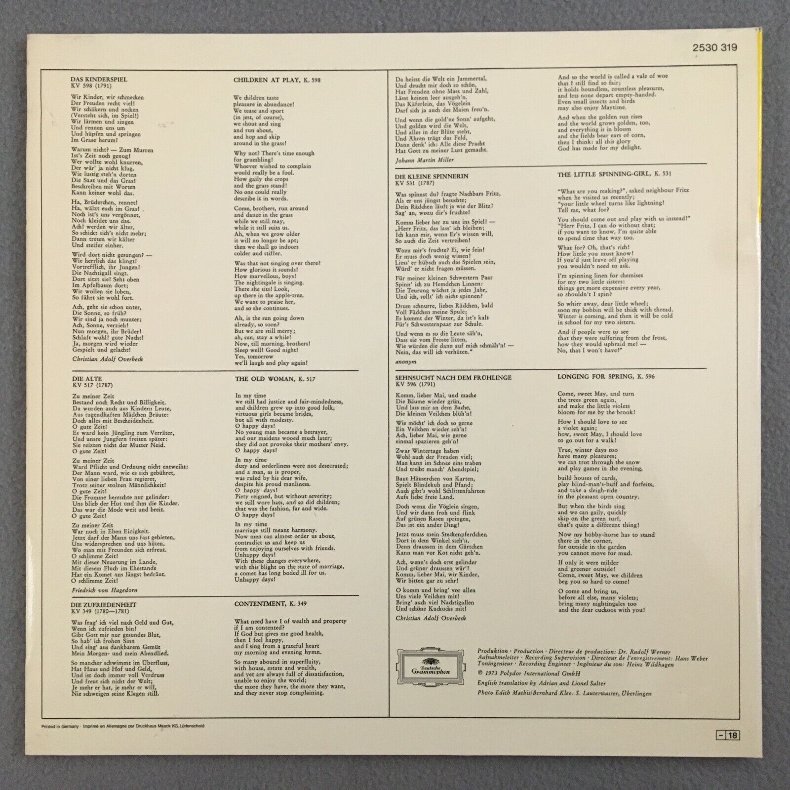 V275 Mozart Songs Mathis Klee Piano DGG 2530 319 Stereo PROMO