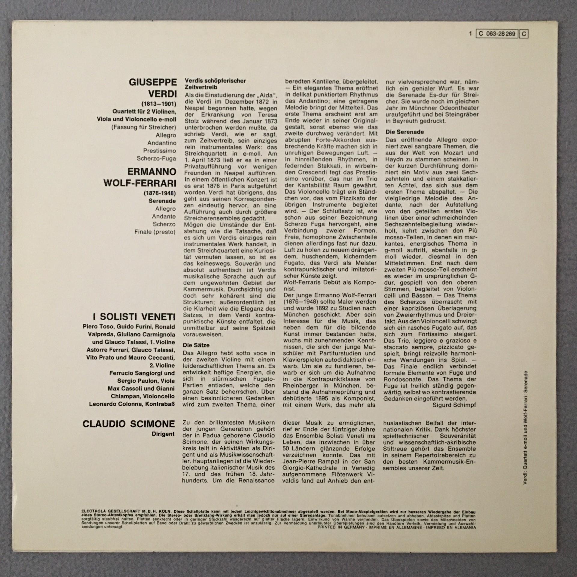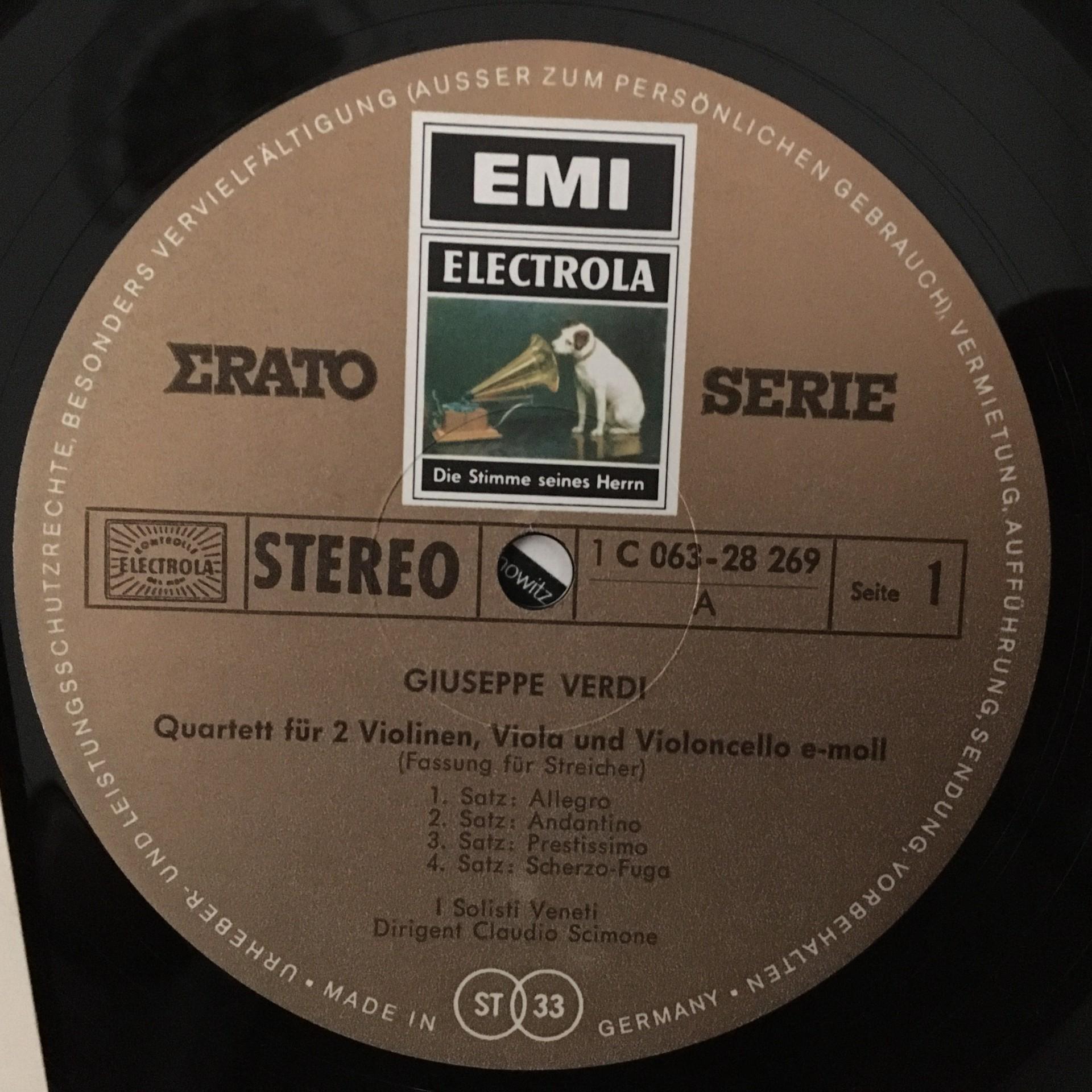 J368 Verdi Quartet Wolf-Ferrari Scimone I Solisti Veneti EMI 1 C 063-28 269 Ster