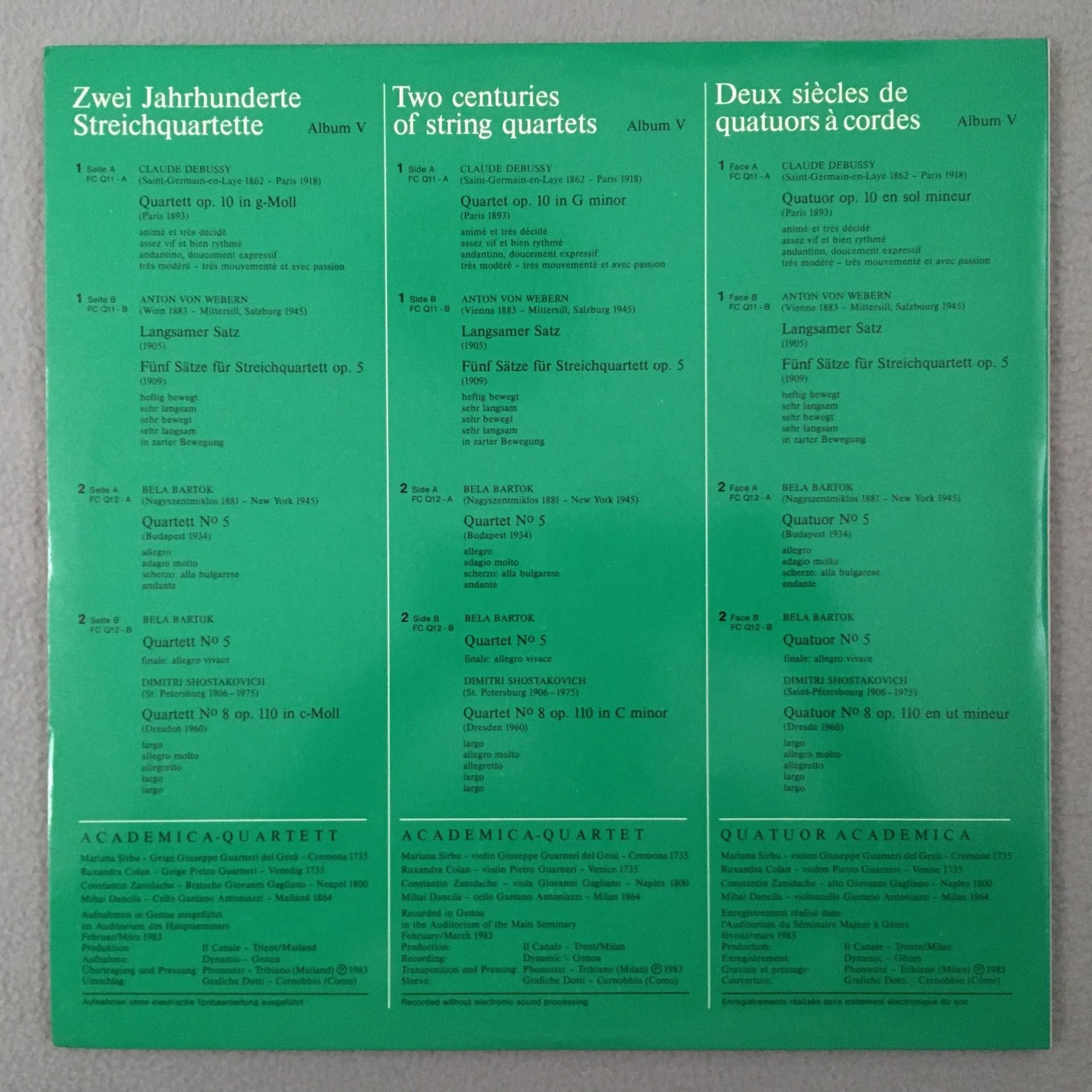 J365 Debussy Webern Bartok String Quartets 2LP Klöckner-Moeller Vol.5 Stereo