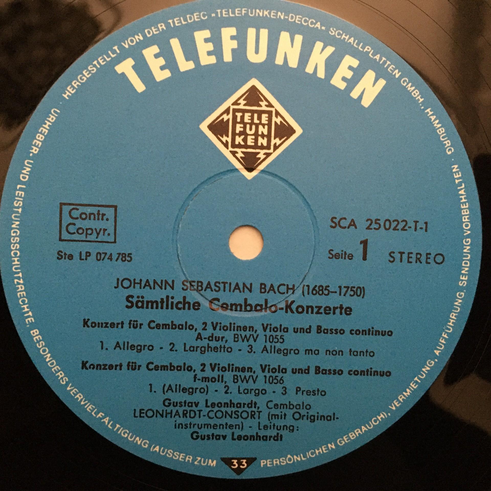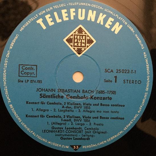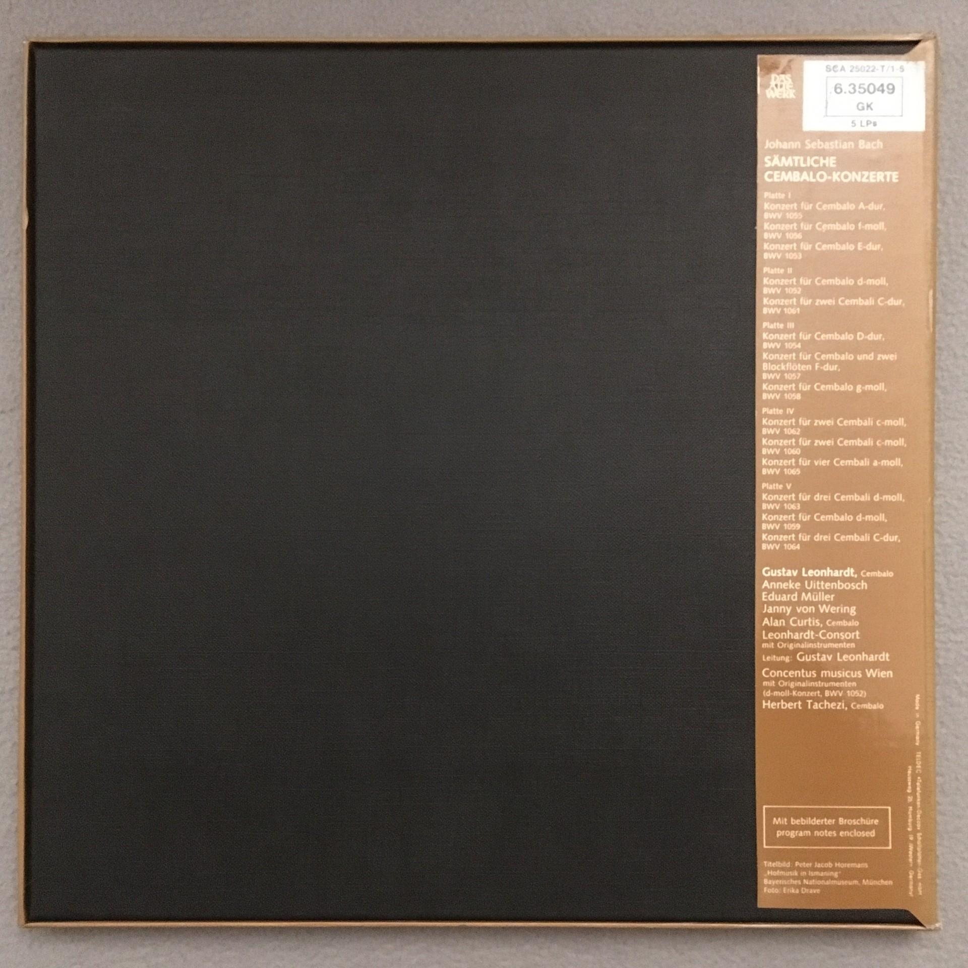 C814 Bach Complete Harpsichord Concertos Leonhardt 5LP Telefunken 6.35049 Stereo