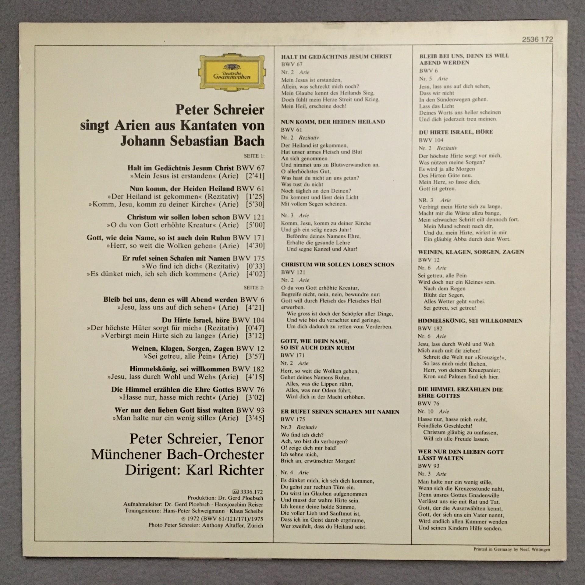 K004 Bach Cantatas Arias Schreier Richter DGG 2536 172 Stereo