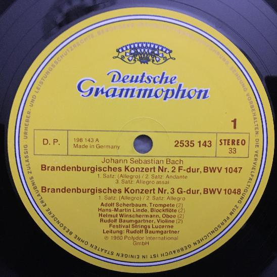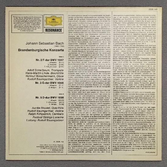 K006 Bach Brandenburg Concertos Scherbaum Nicolet Baumgartner DGG 2535 143 St