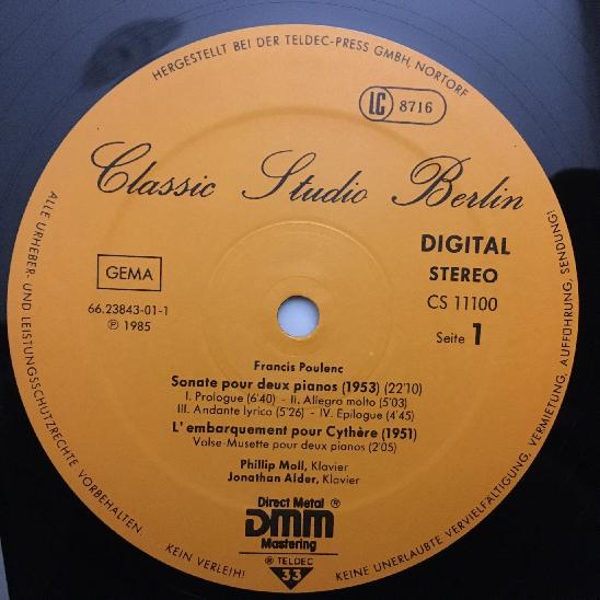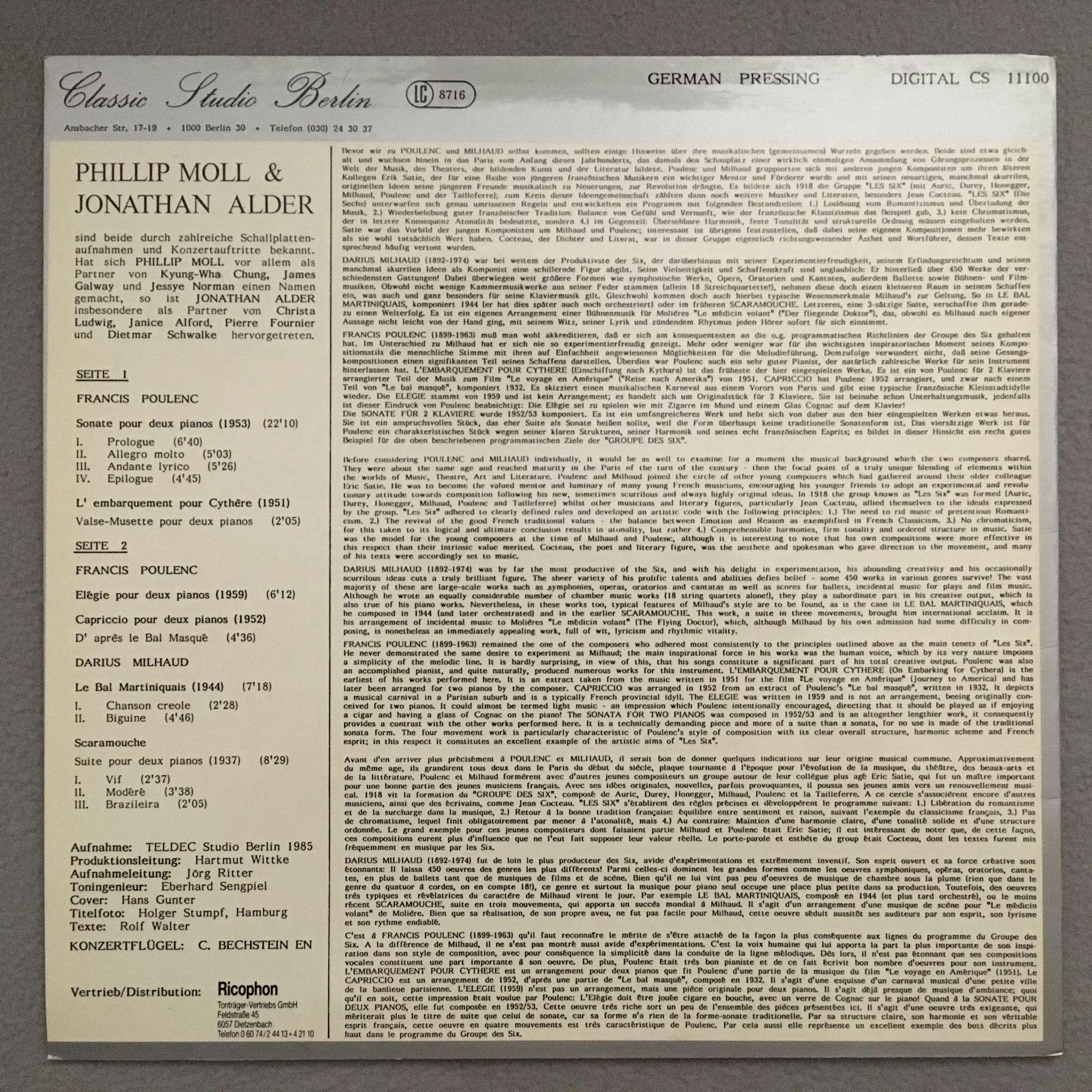 K011 Moll & Alder Poulenc Milhaud Classic Studio Berlin CS 11100 Digital Stereo