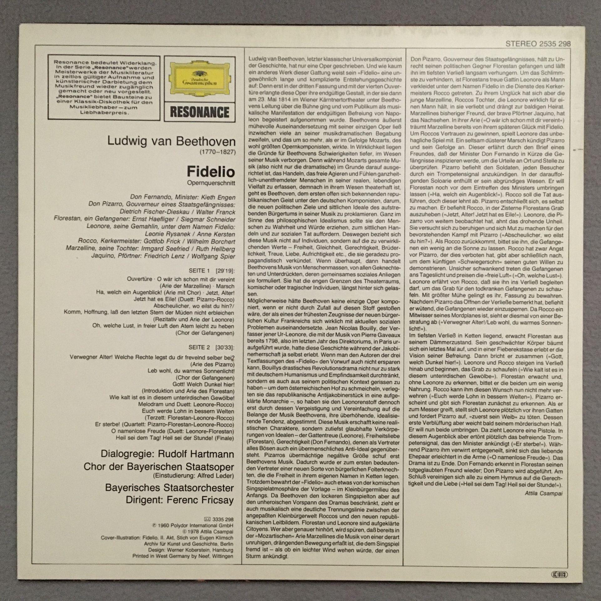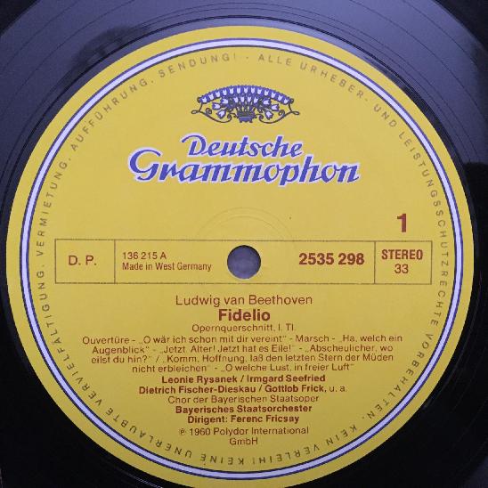 K012 Beethoven Fidelio Rysanek Fischer-Dieskau Fricsay DGG 2535 298 Stereo