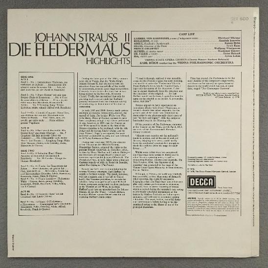 K020 J. Strauss The Bat Wächter Janowitz Bohm VPO DECCA SET 600 Stereo