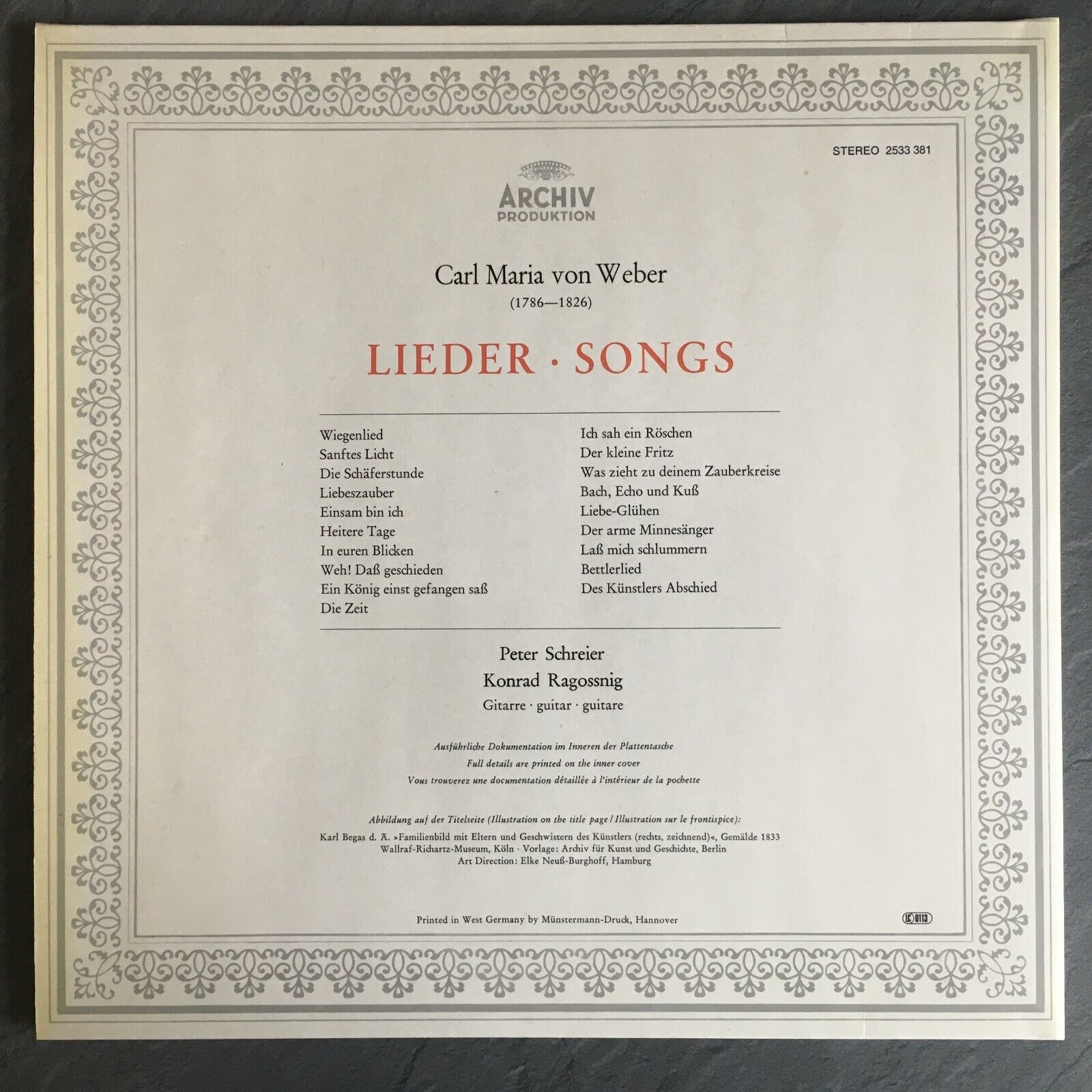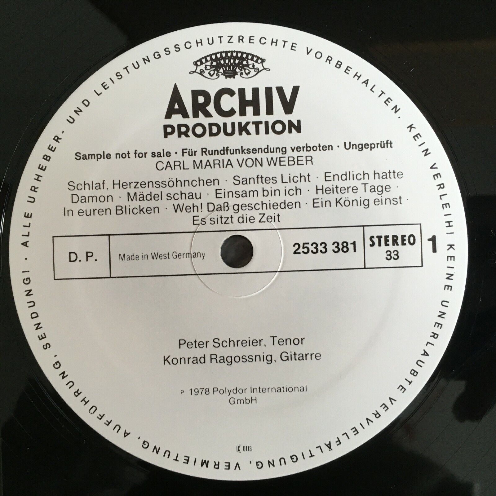 V308 Weber Songs Schreier Ragossnig Guitar DGG Archiv 2533 381 Stereo PROMO