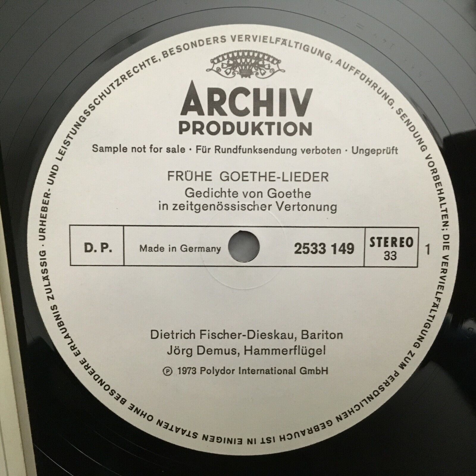 V313 Early Goethe Songs Fischer-Dieskau Demus DGG Archiv 2533 149 Stereo PROMO