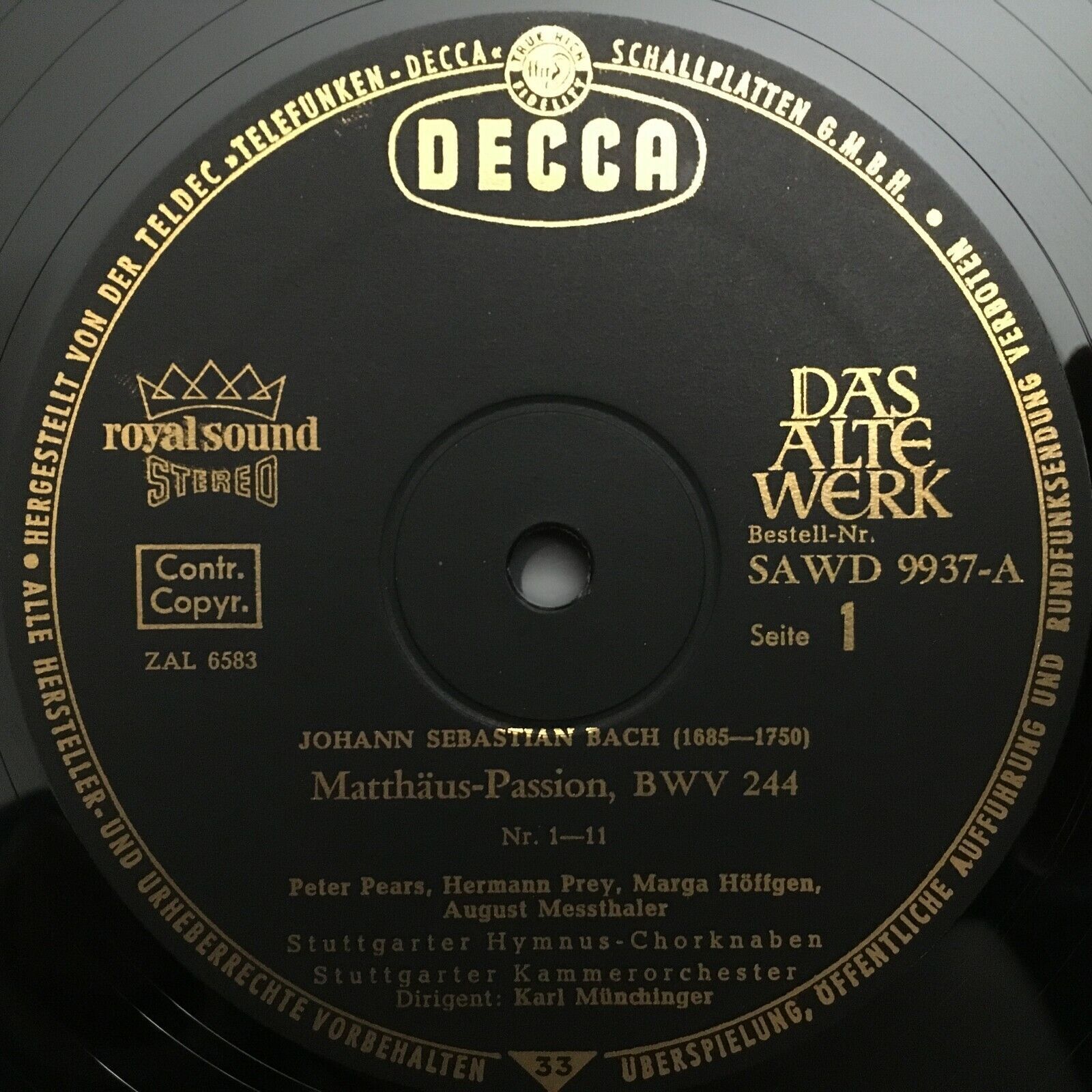 C025 Bach St. Matthew Passion Pears Munchinger 4LP DECCA SAWD 9937-40-A Stereo