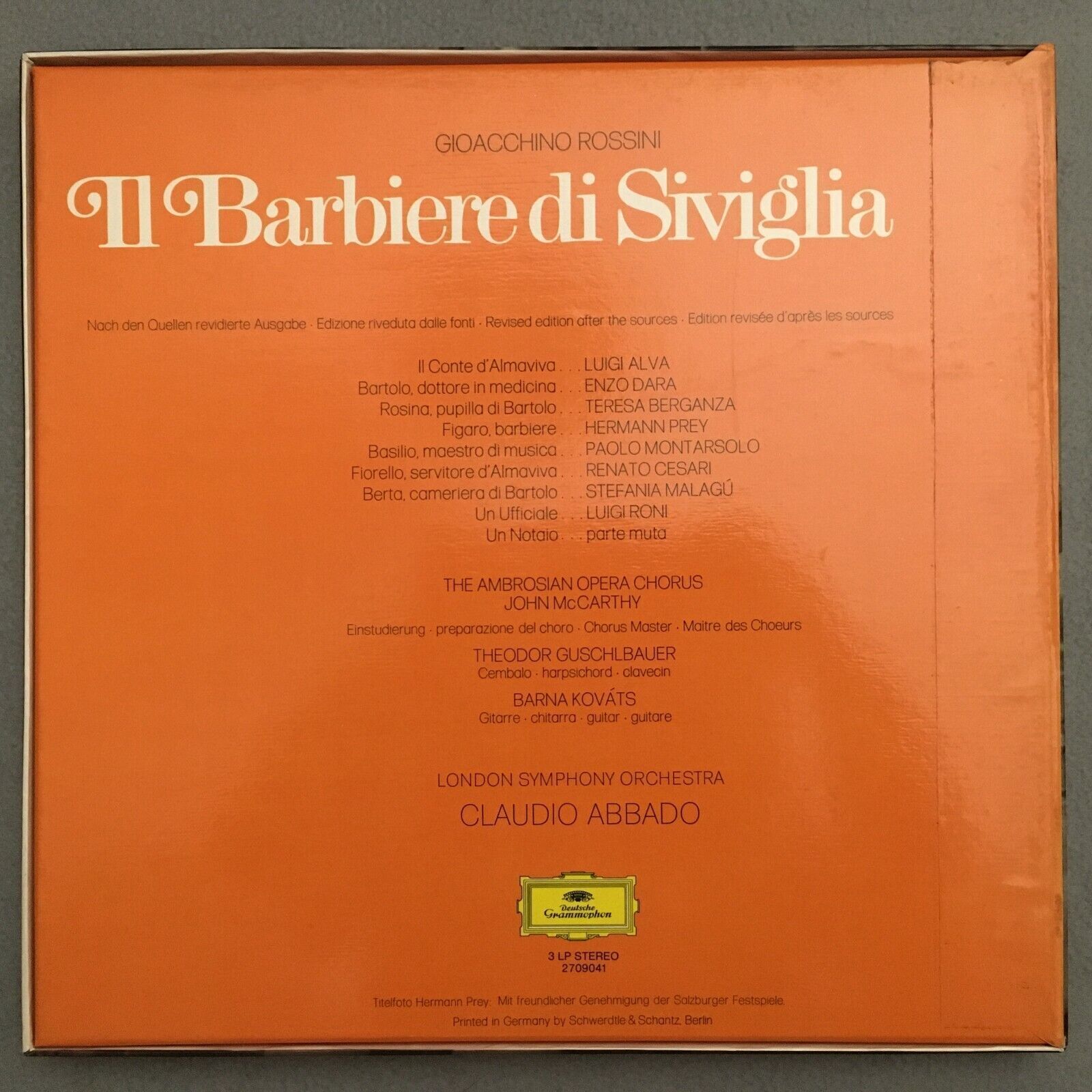 C058 Rossini il Barbiere di Siviglia Prey Abbado LSO 3LP DGG 2709 041 Stereo