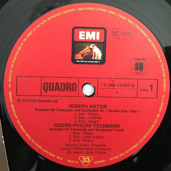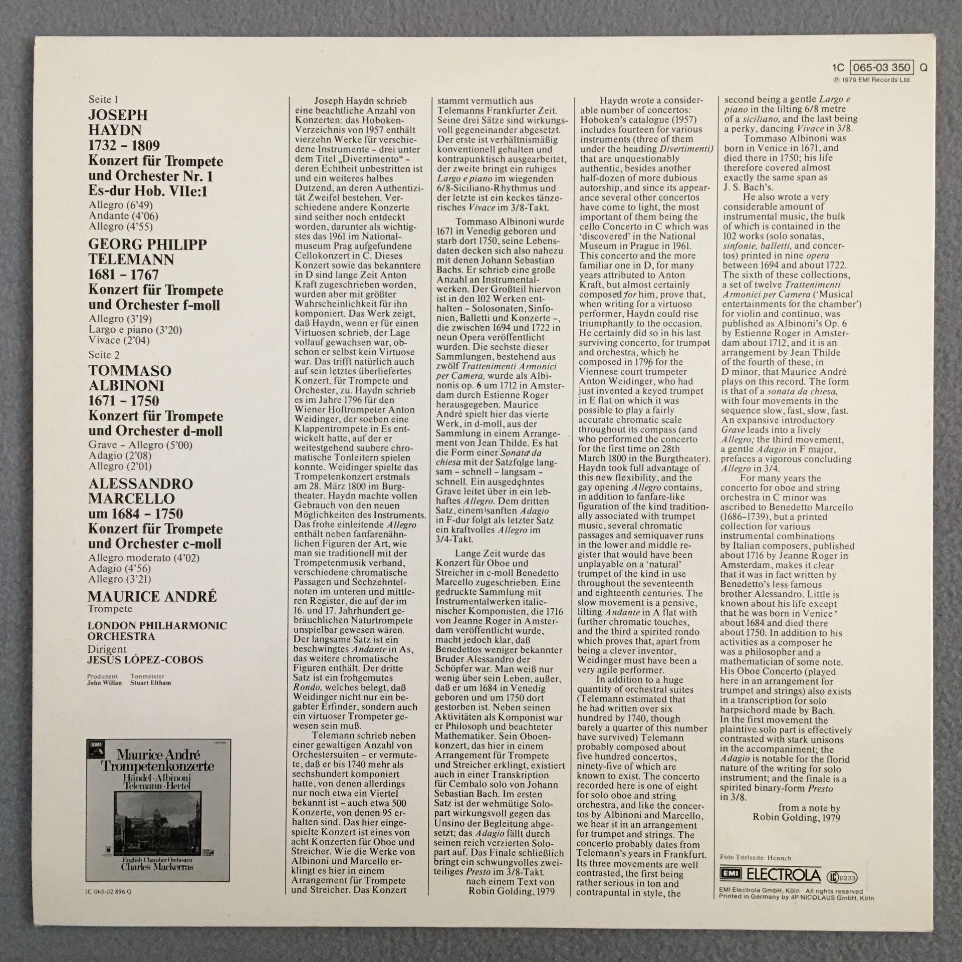 J344 Andre Trumpet Concertos Haydn Telemann EMI 1C 065-03 350 Q Quadro
