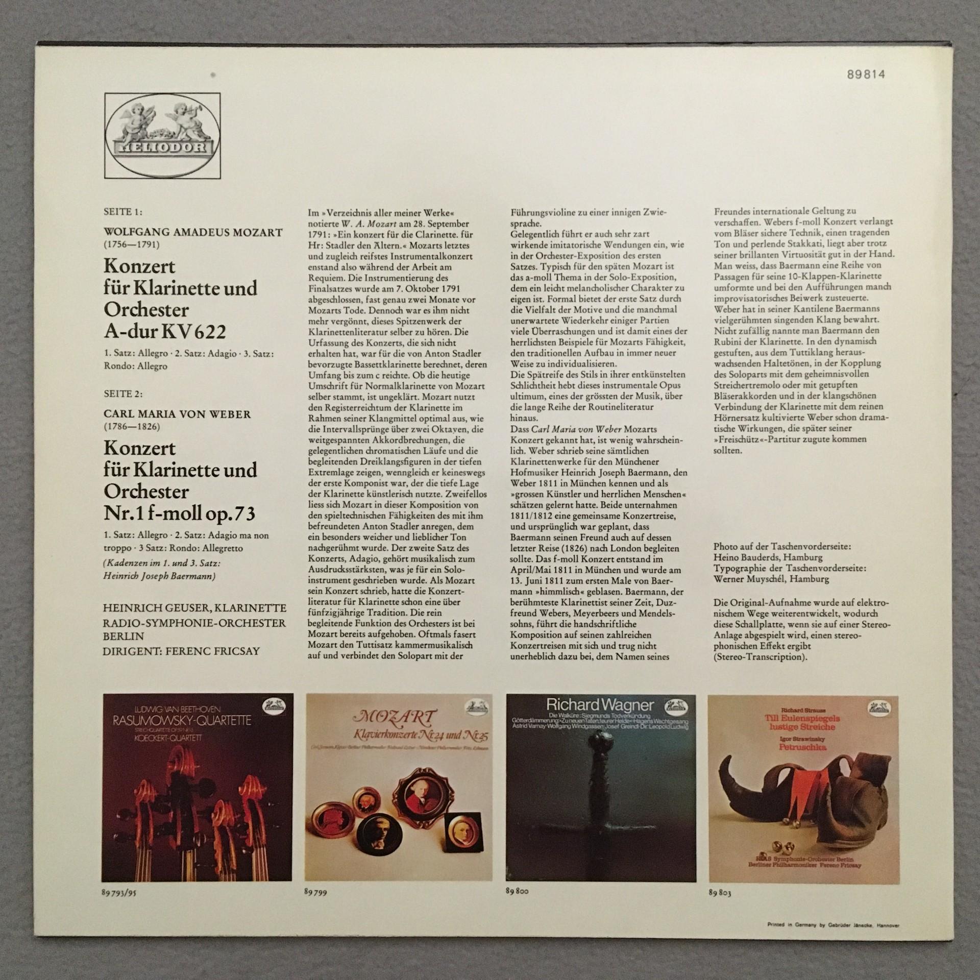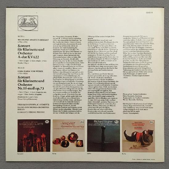 J581 Mozart Weber Clarinet Concertos Geuser Fricsay Heliodor 89 814 Stereo