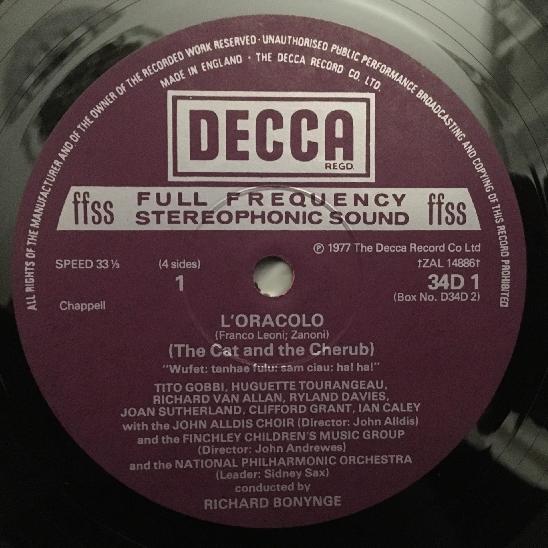 C822 Leoni L´Oracolo Sutherland Gobbi Bonynge 2LP DECCA D34D 2 Stereo