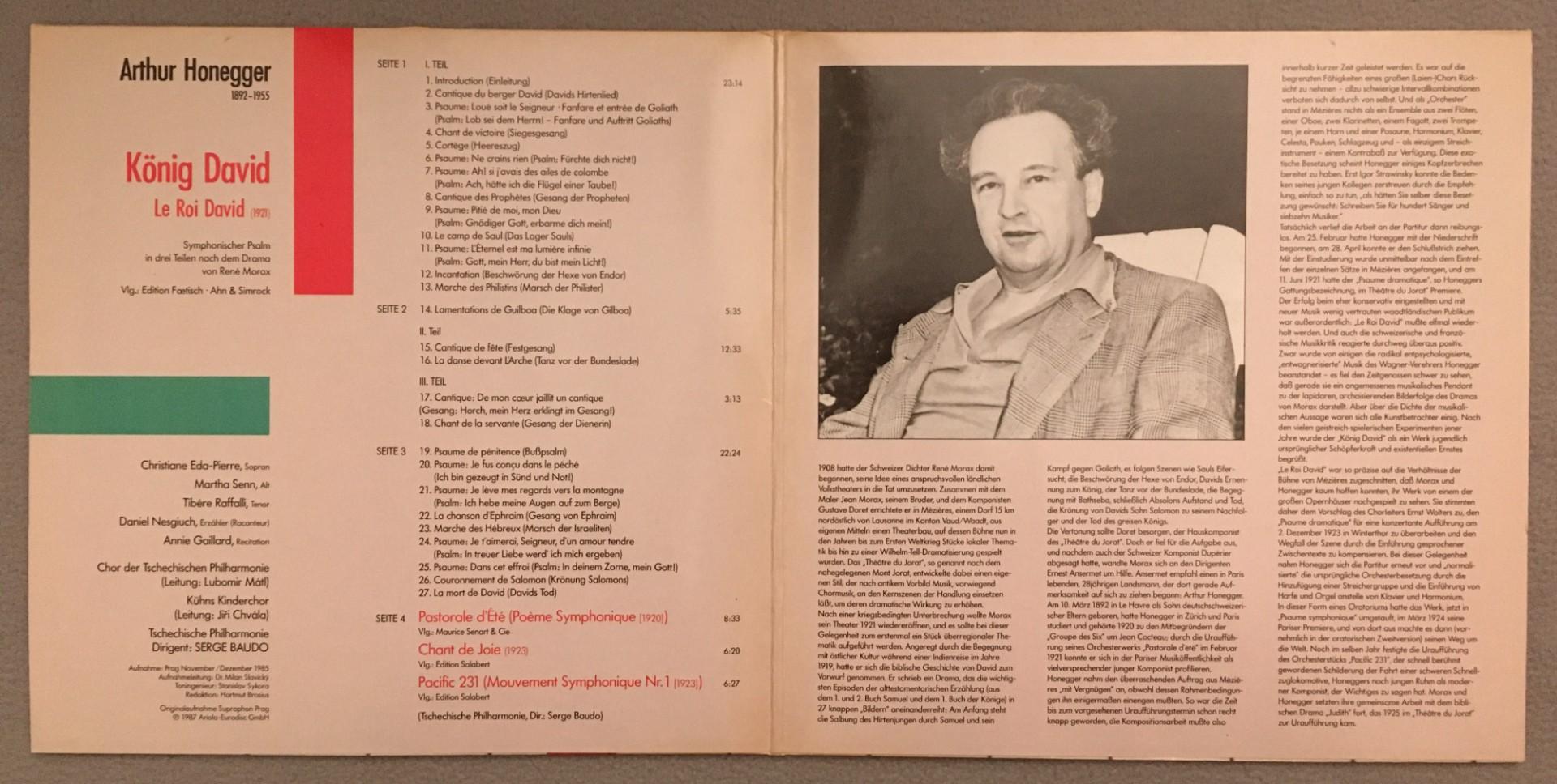 K023 Honegger King David Eda-Pierre Baudo 2LP Supraphon 302 851-430 Digital St