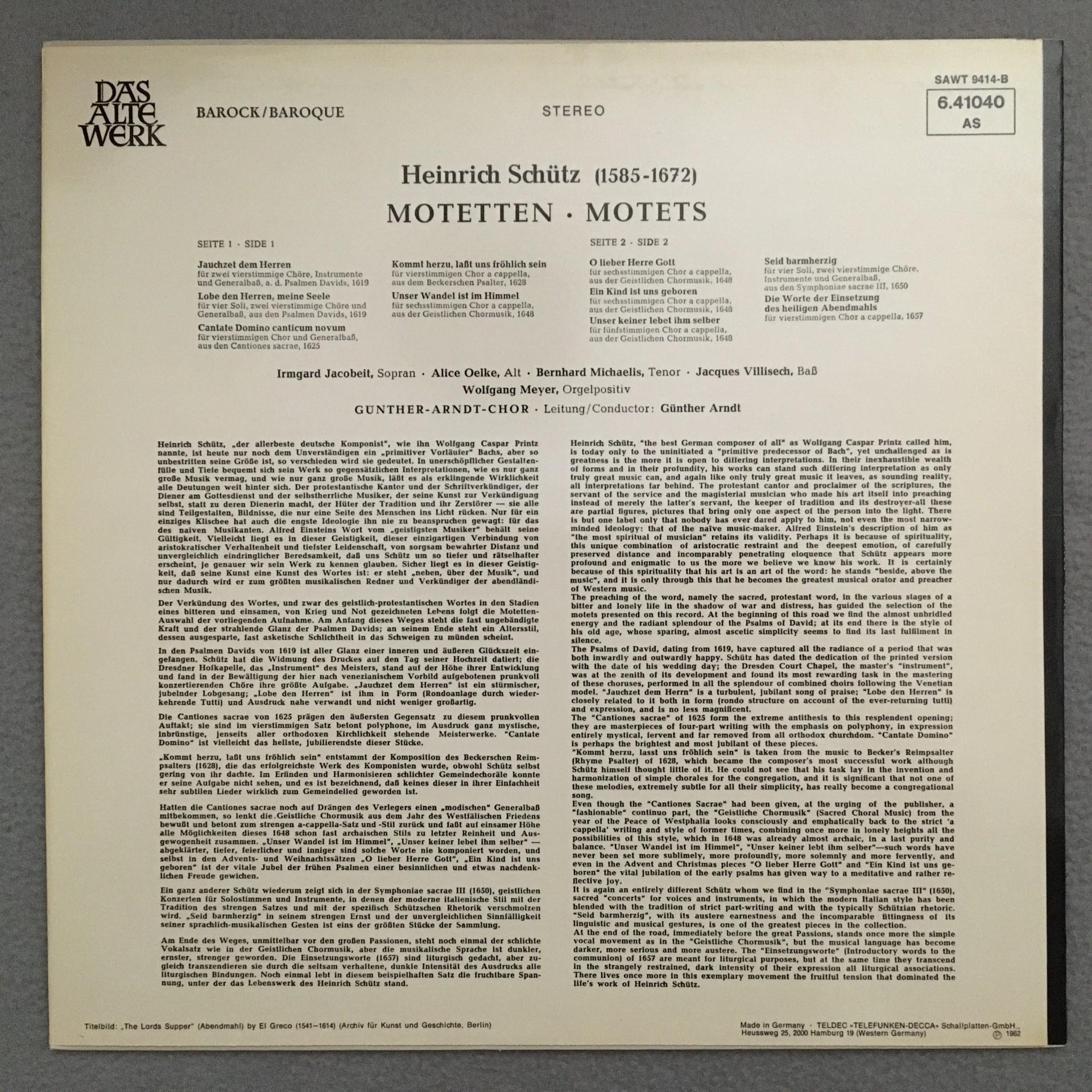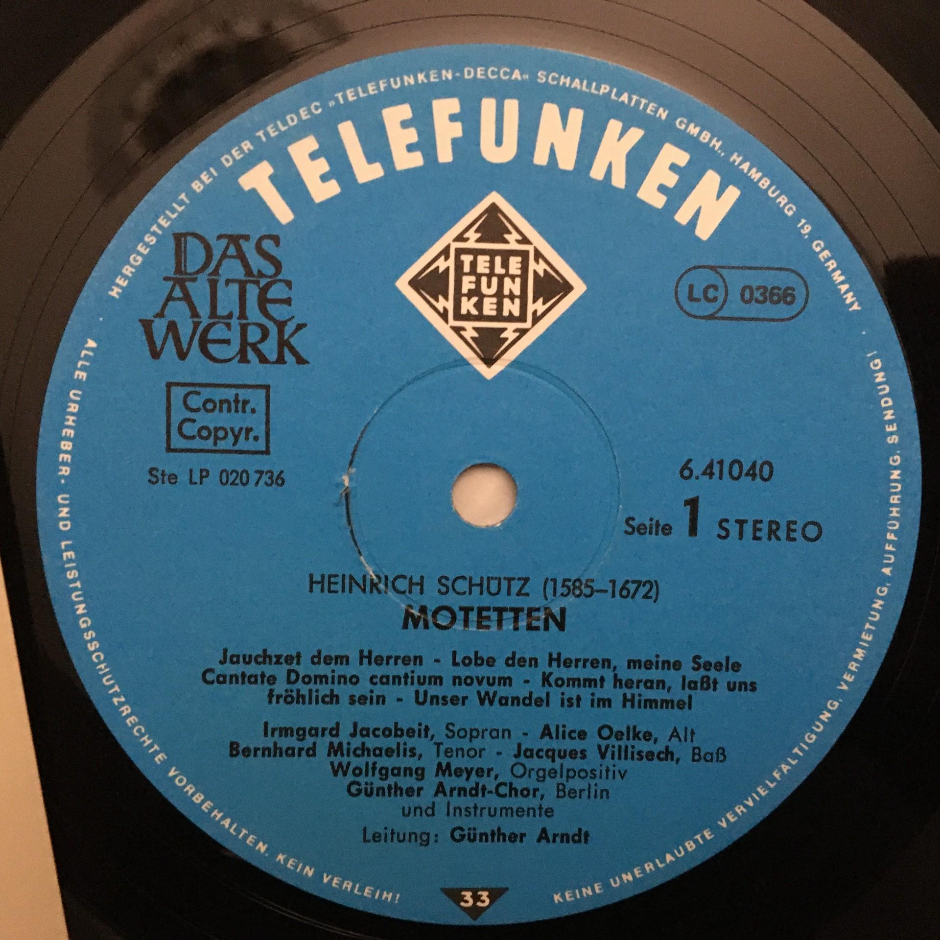 K027 Schütz Motets Jacobeit Meyer Organ Arndt Telefunken 6.41040 AS Stereo