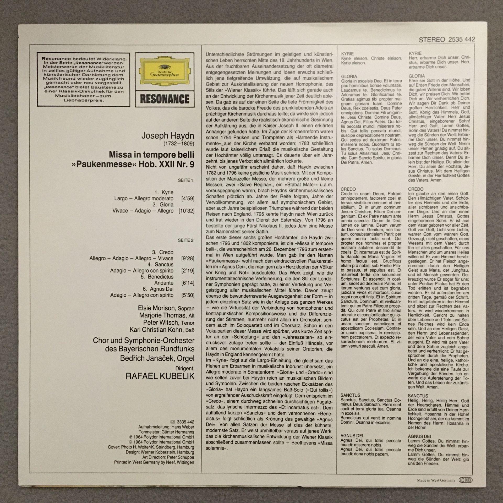 K034 Haydn Mass Janacek Organ Kubelik DGG 2535 442 Stereo