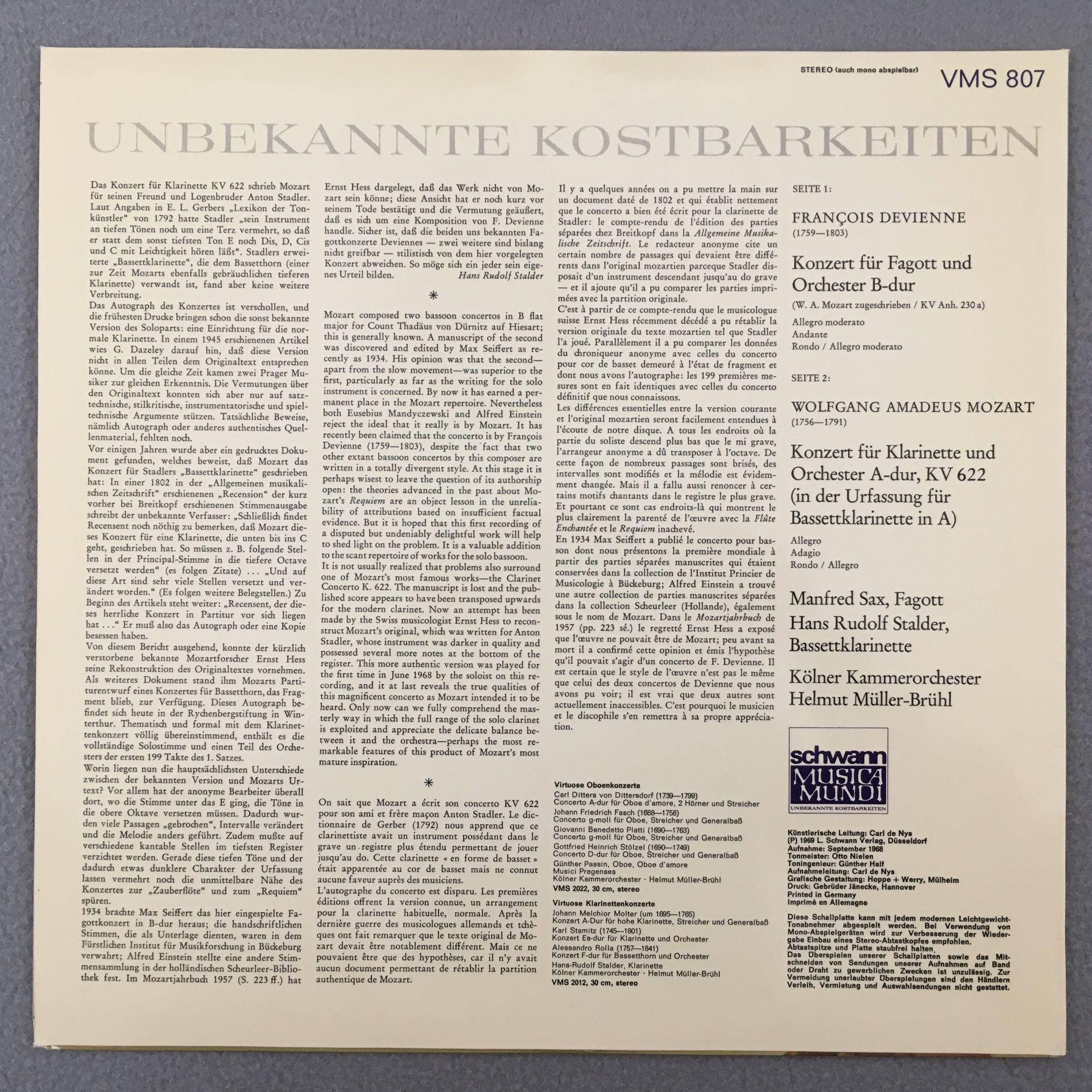 K040 Devienne Mozart Concertos Sax Müller-Brühl Schwann VMS 807 Stereo