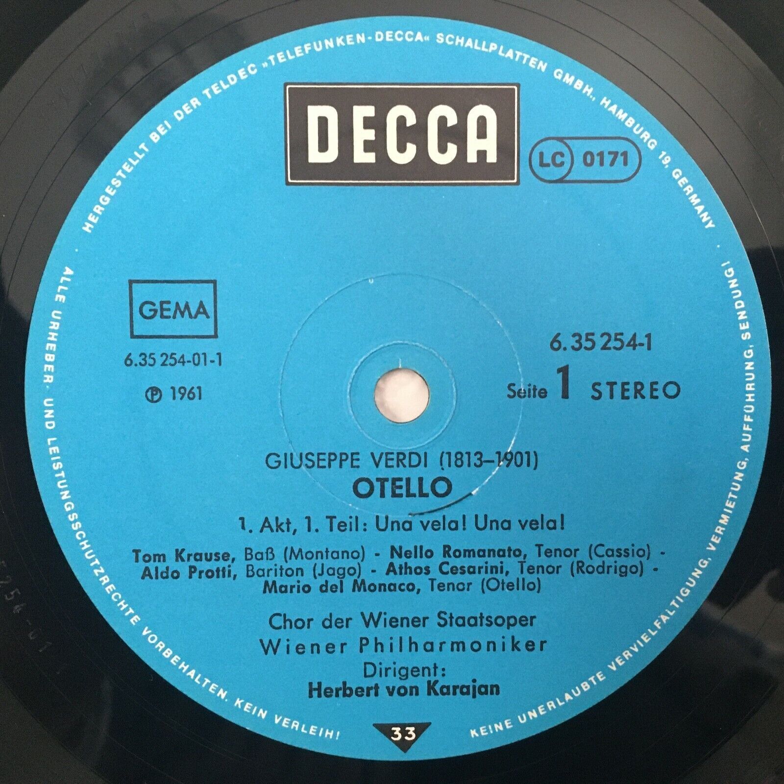 C072 Verdi Otello De Monaco Tebaldi Karajan VPO 3LP DECCA 6.35254 EX Stereo