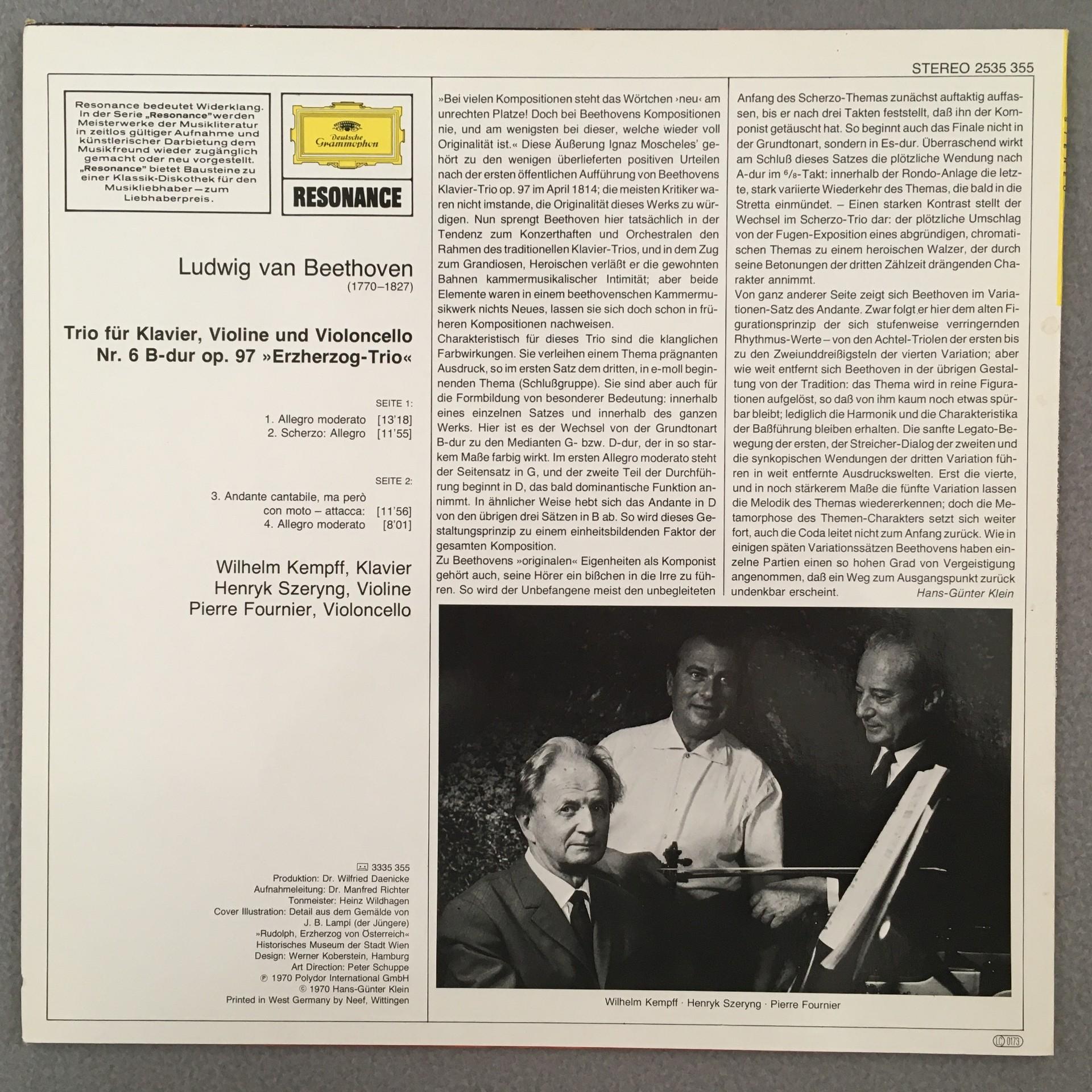 K048 Beethoven Trio No.6 Kempff Szeryng Fournier DGG 2535 355 Stereo