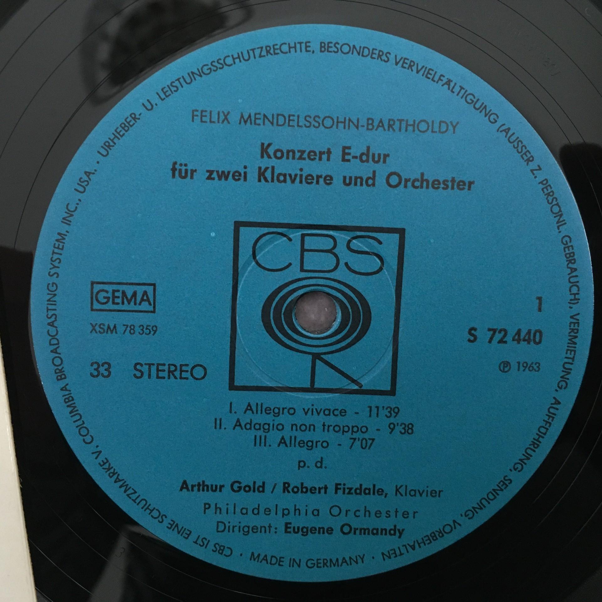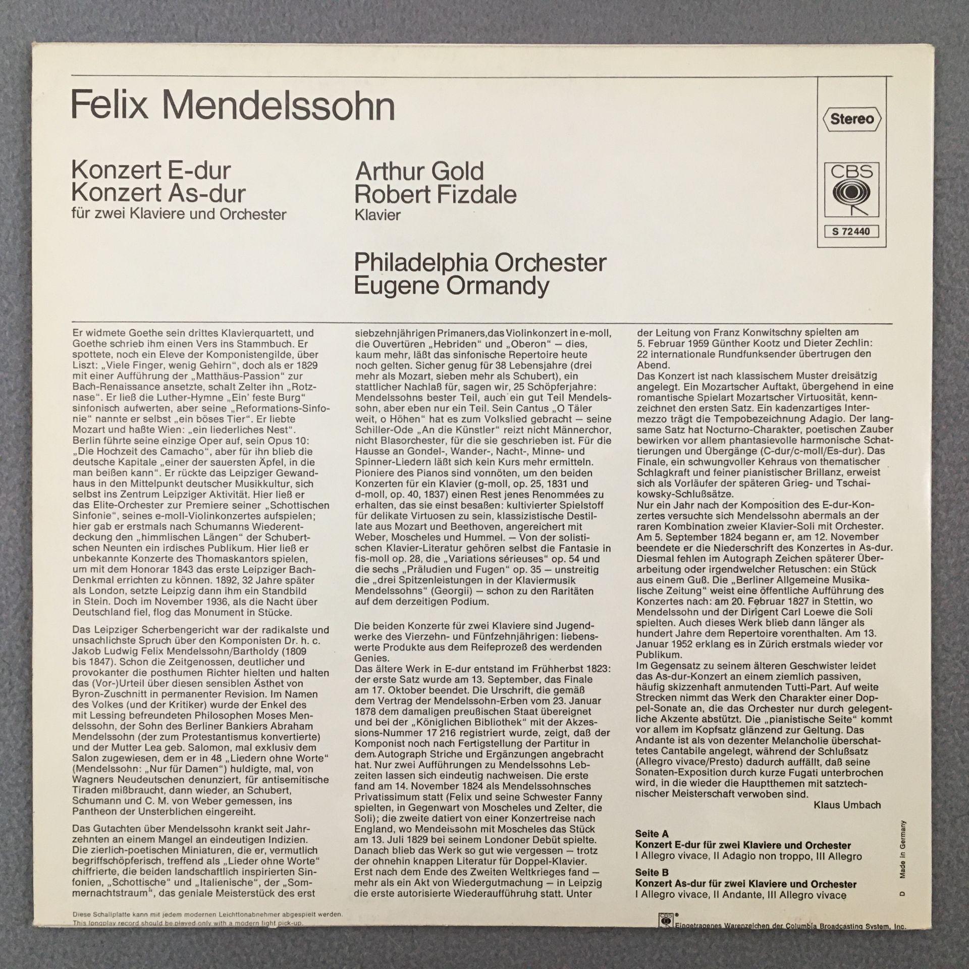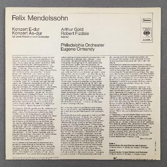 K049 Mendelssohn Piano Concertos Gold Fizdale Ormandy CBS S 72 440 Stereo