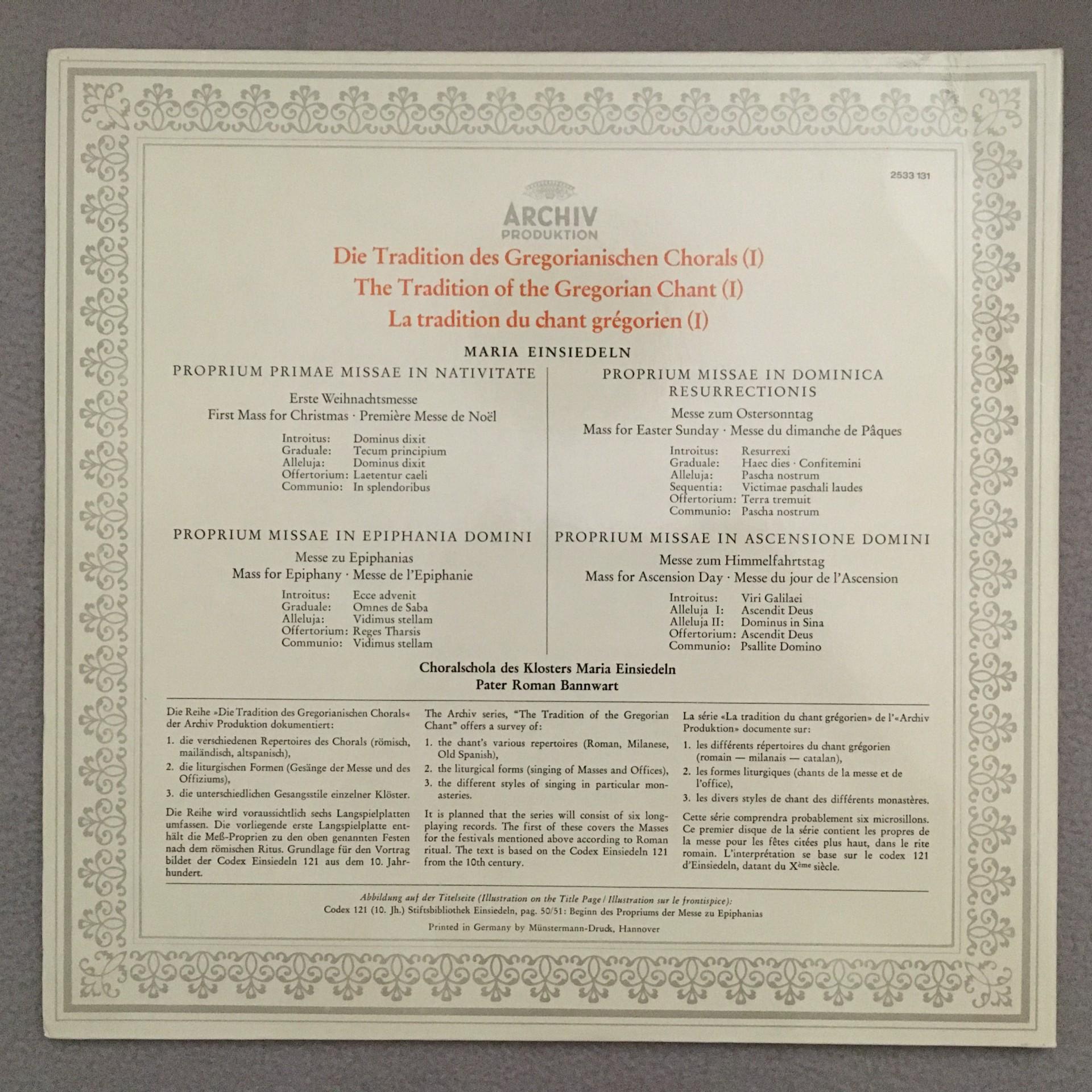 K091 Gregorian Chant Einsiedeln Bannwart DGG Archiv 2533 131 Stereo