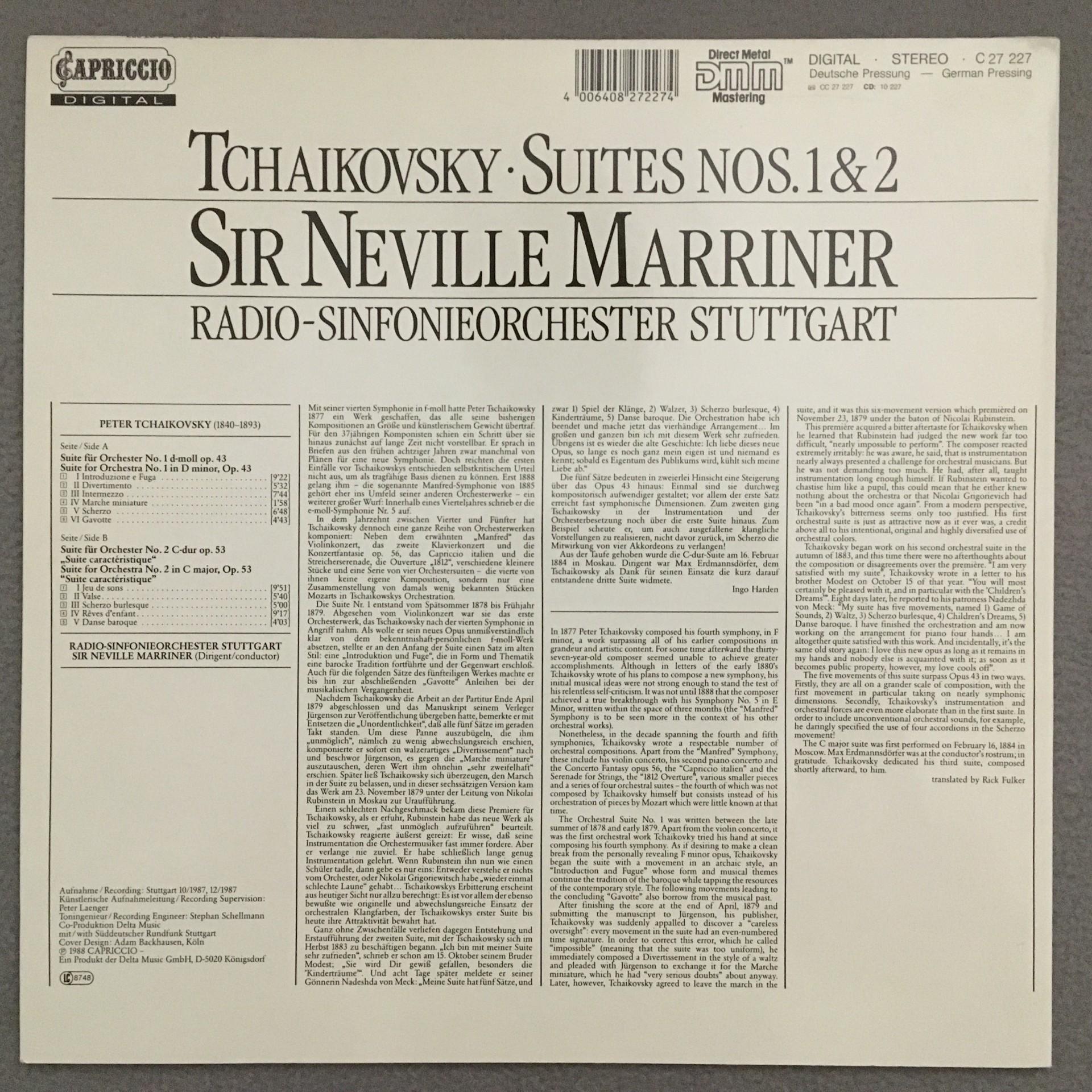 K097 Tchaikovsky Suites No.1 & 2 Marriner Capriccio C 27 227 Digital Stereo