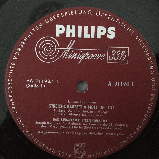 K125 Beethoven String Quartets Budapest String Qu. Philips Minigroove A 01198 L