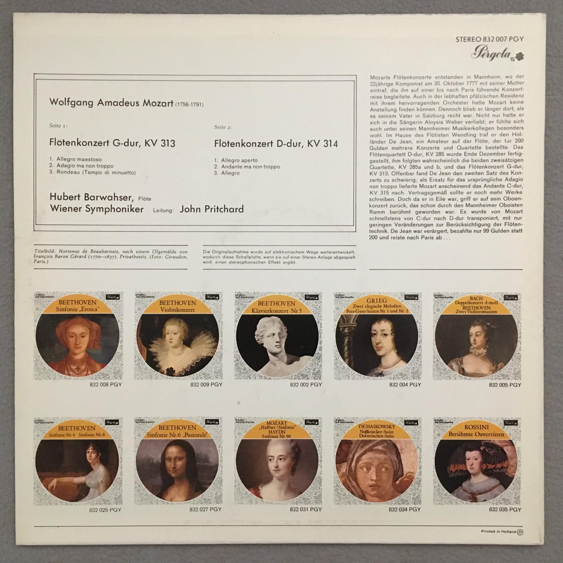 K158 Mozart Flute Concertos Barwahser Pritchard Pergola 832 007 PGY Stereo