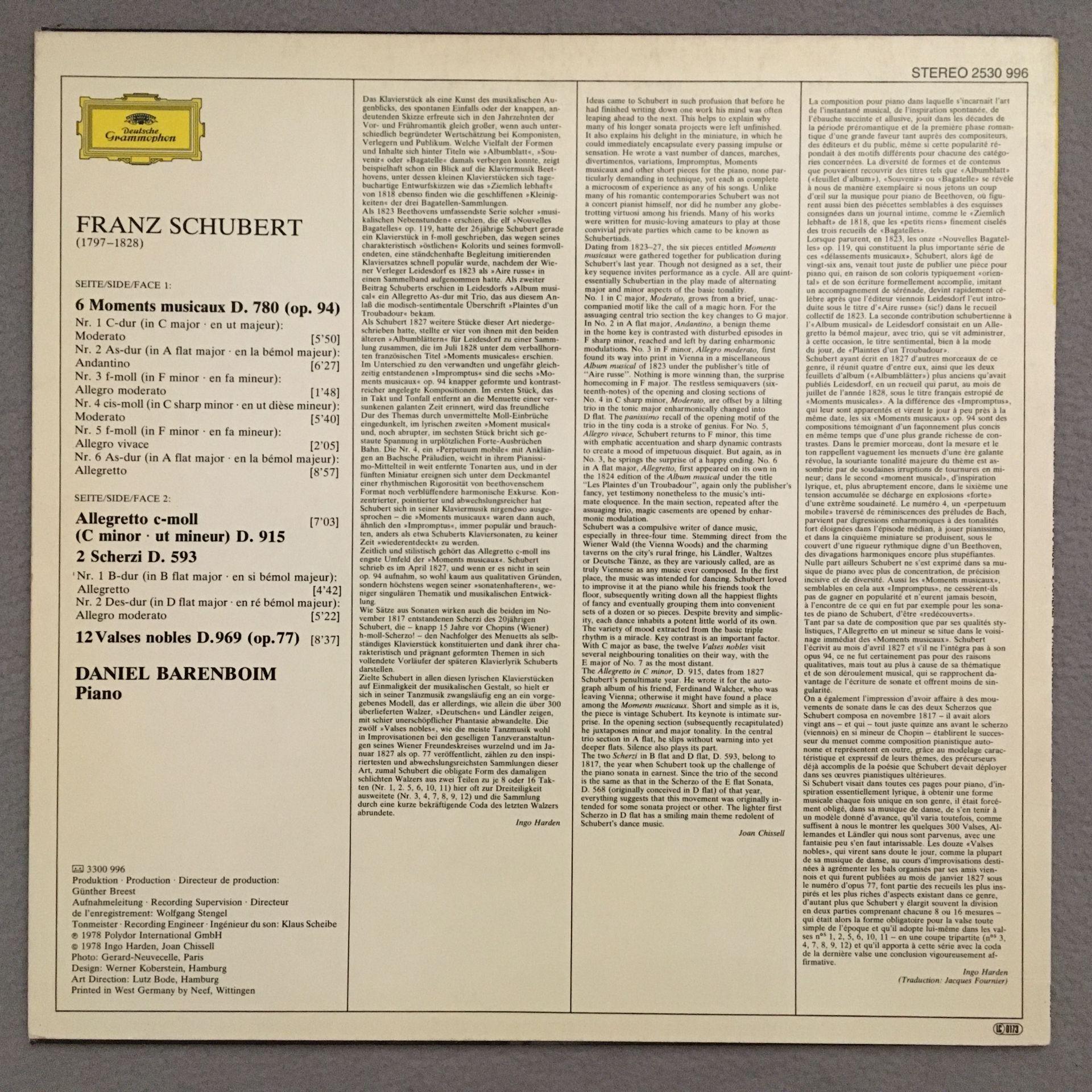 K165 Schubert Moments Musical Scherzi Barenboim DGG 2530 996 Stereo