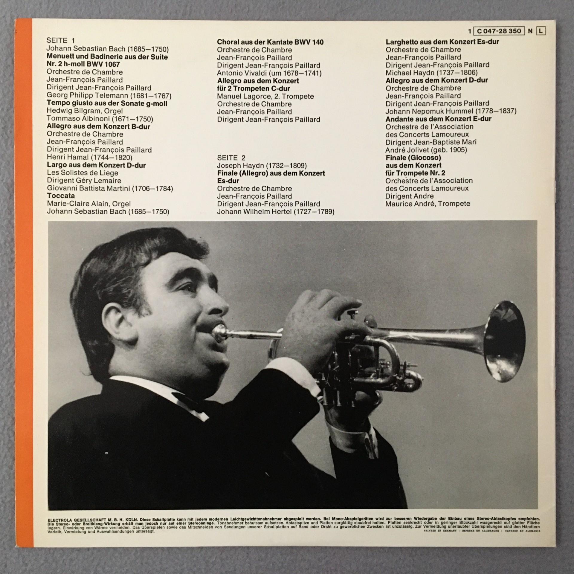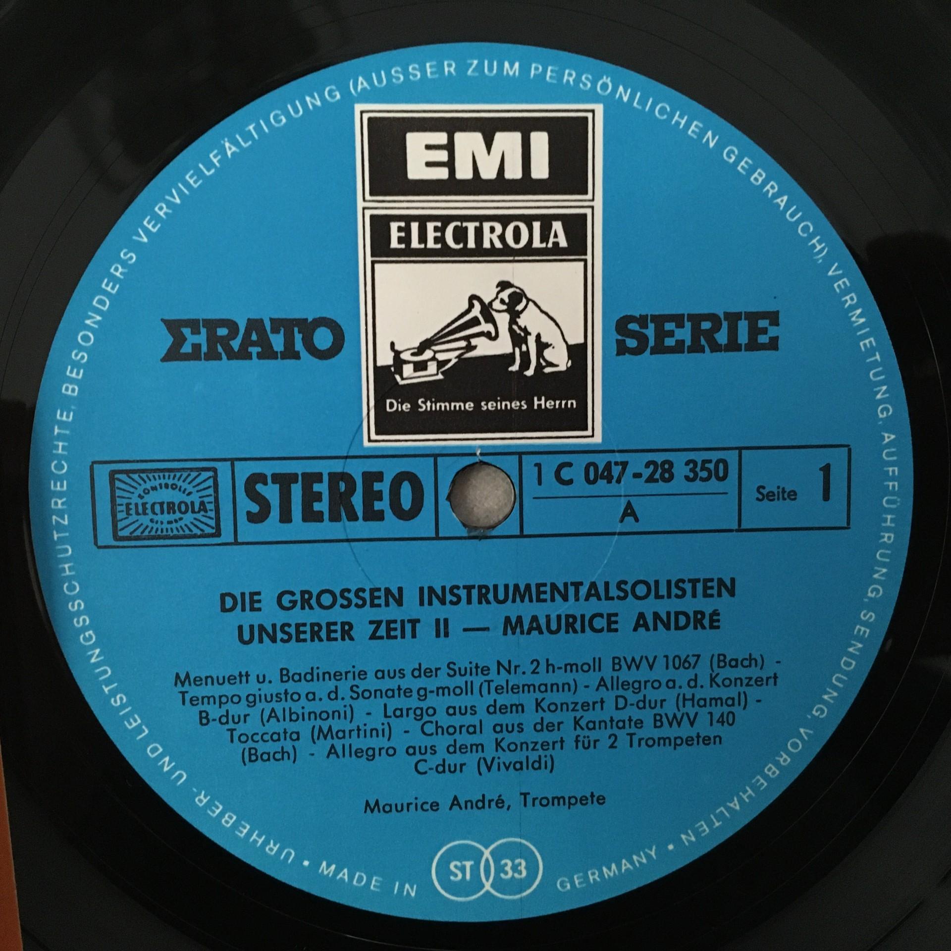K178 Maurice Andre Bach Telemann Vivaldi EMI Erato 1 C 047-28 350 N Stereo