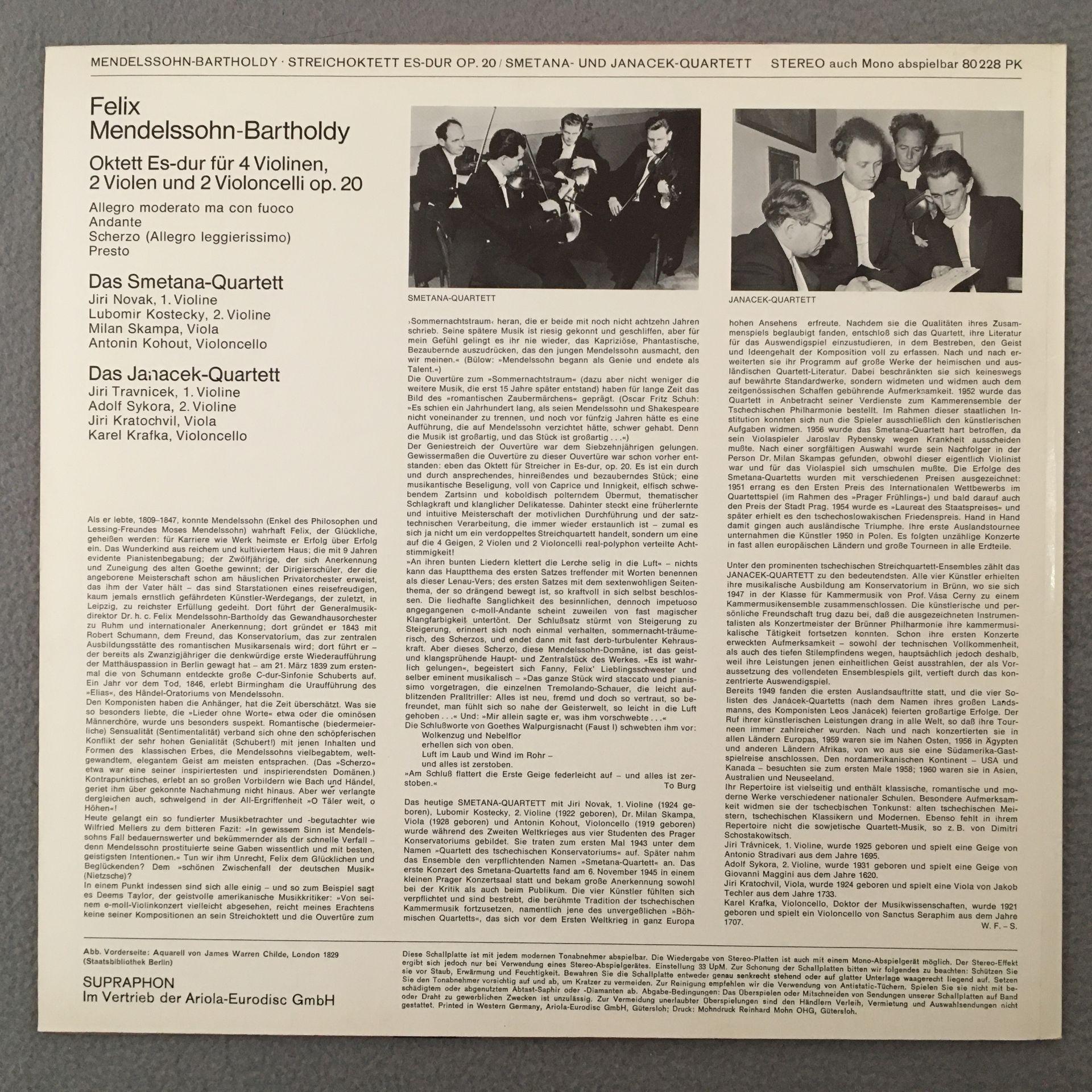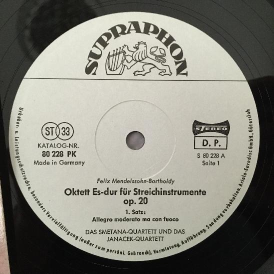K182 Mendelssohn Octet Smetana Janacek Quartet Supraphon 80 228 PK Stereo