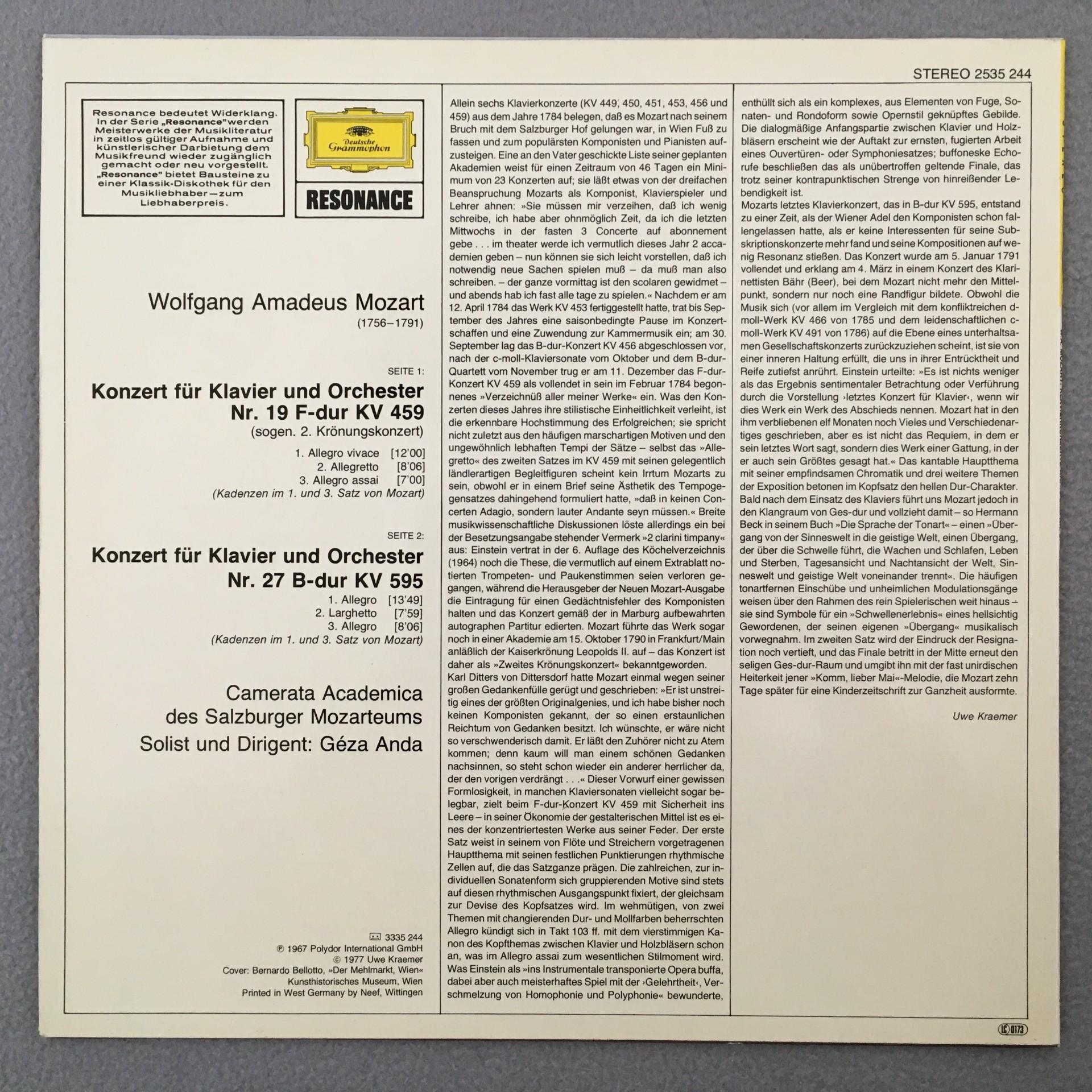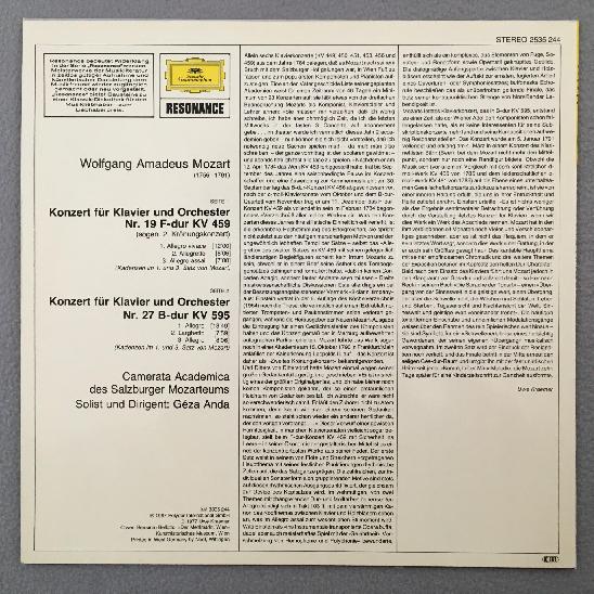 K191 Mozart Piano Concertos Anda Camerata Salzburg DGG 2535 244 Stereo