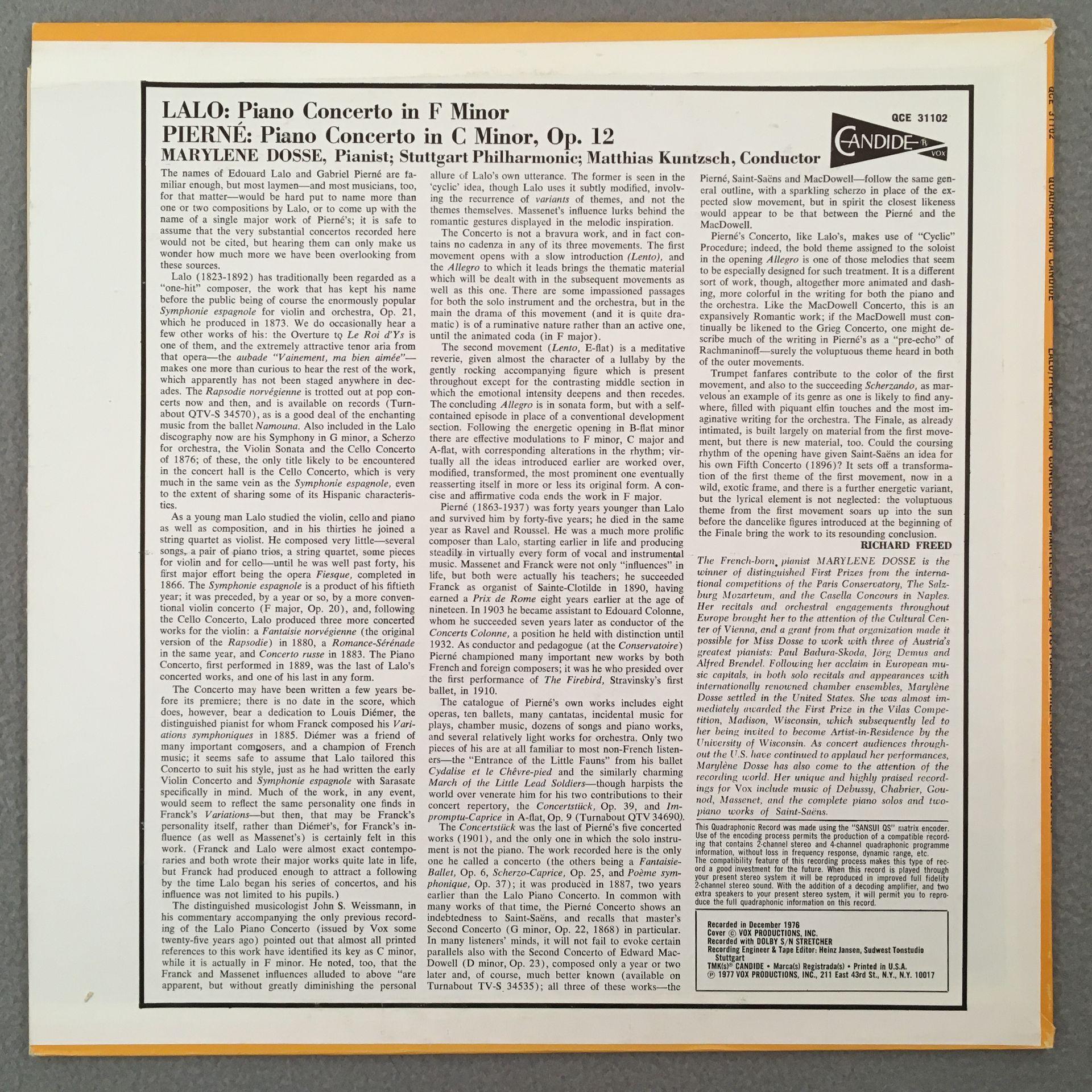 K202 Pierne Lalo Piano Concertos Dosse Kuntzsch Candide QCE 31 102 Quadro