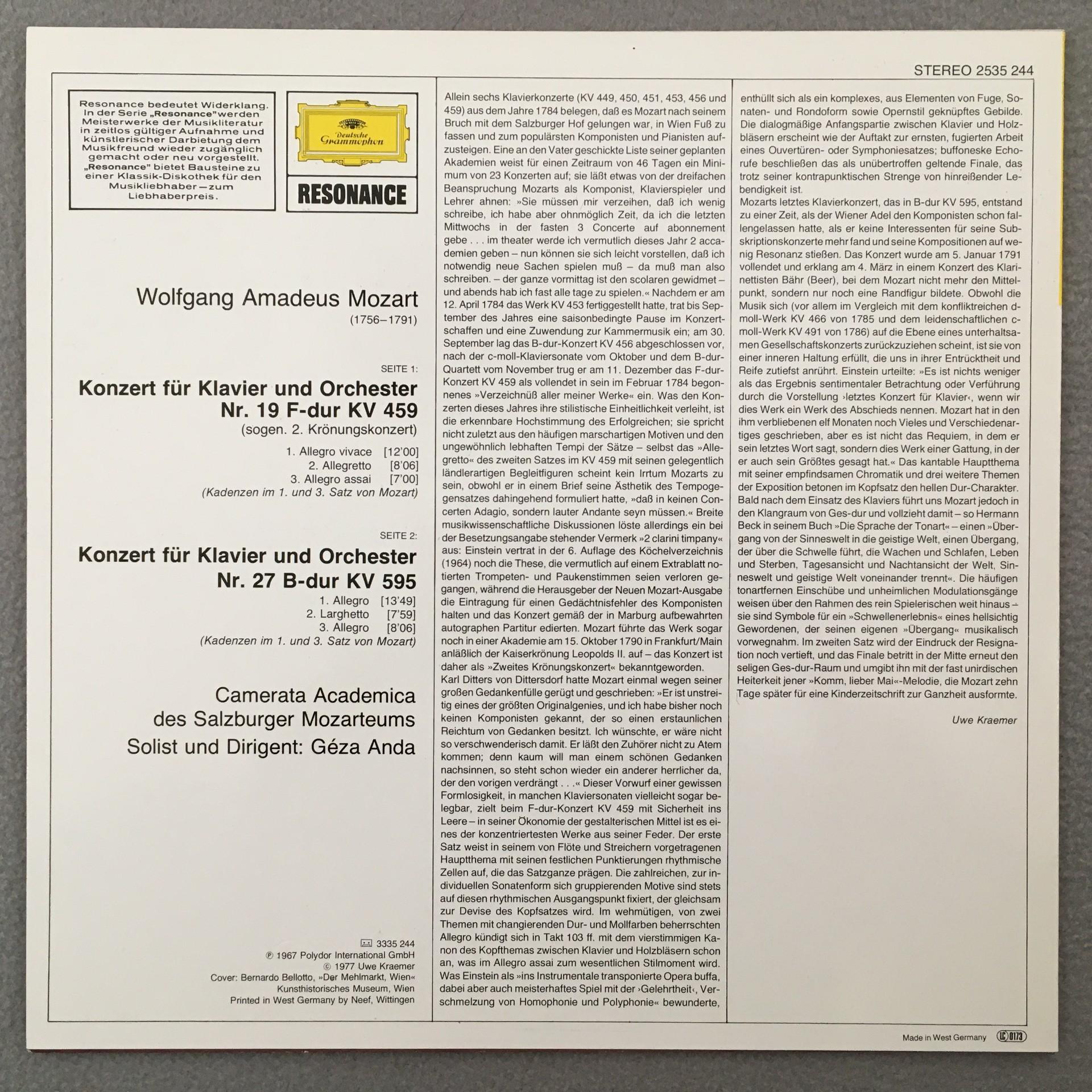 K210 Mozart Piano Concertos Anda Camerata Salzburg DGG 2535 244 Stereo