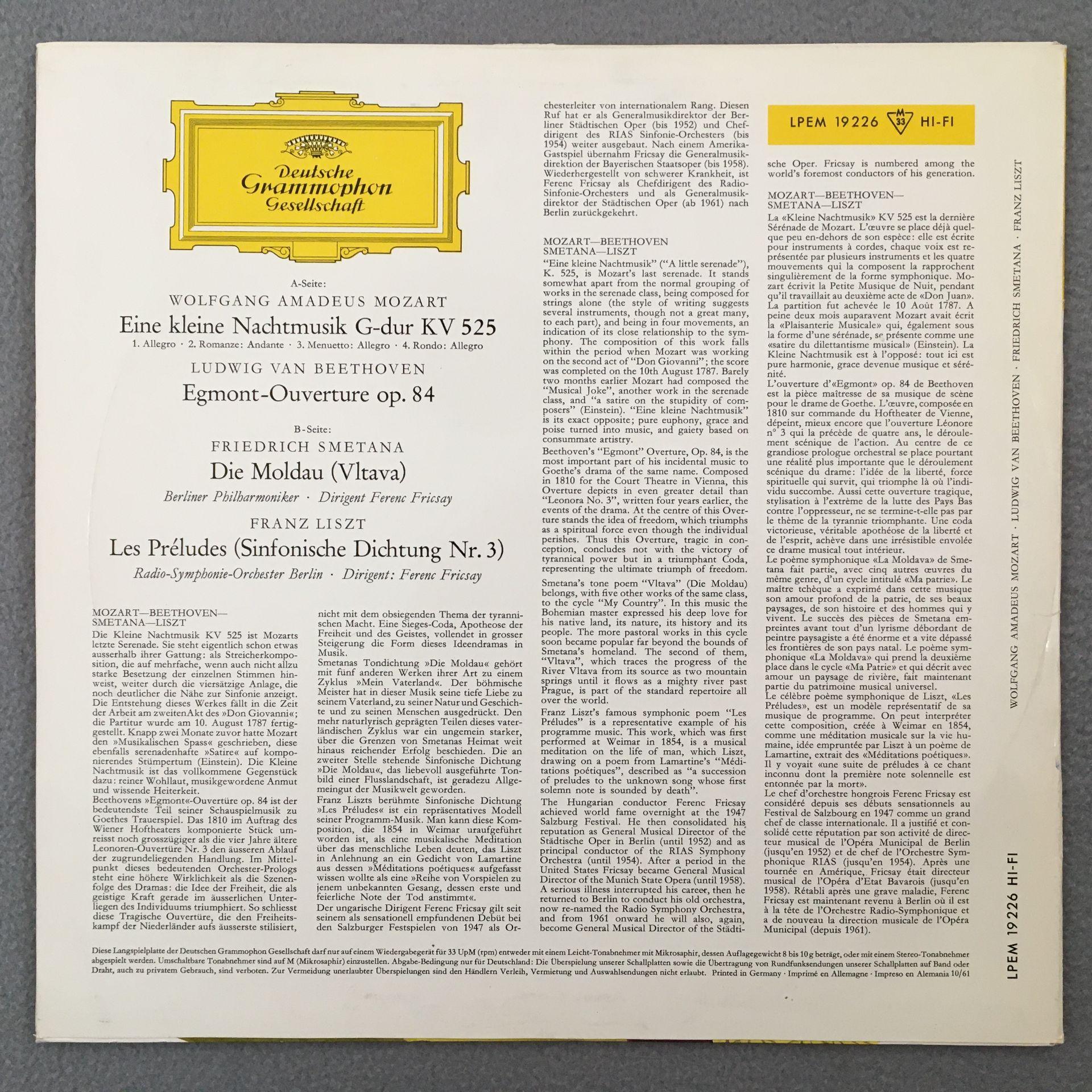 K213 Mozart A Little Night Music Beethoven Overture Fricsay DGG 19 226 LPEM Tul