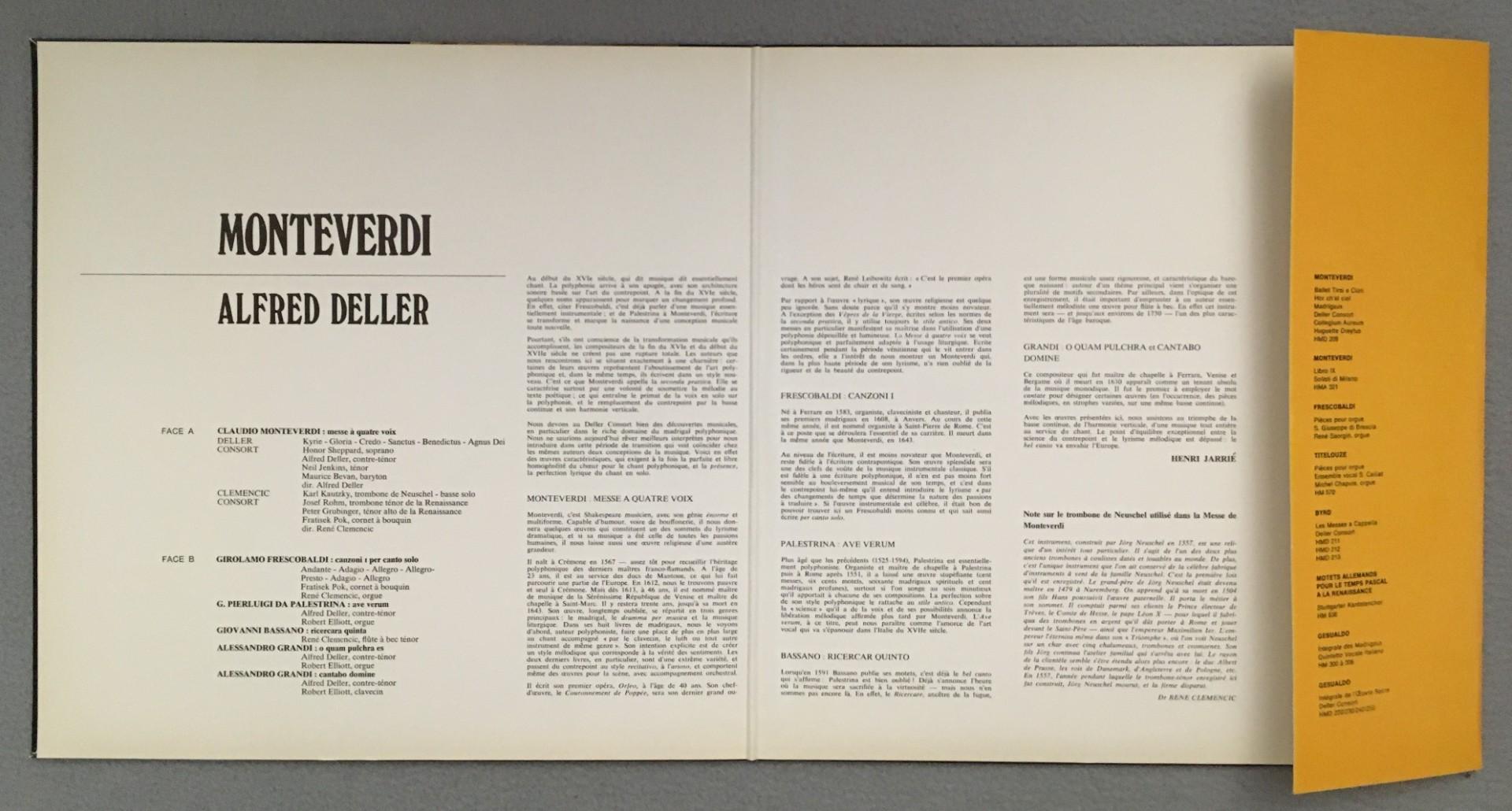 K215 Monteverdi Mass Frescobaldi Deller Consort Harmonia Mundi HMD 221 Stereo