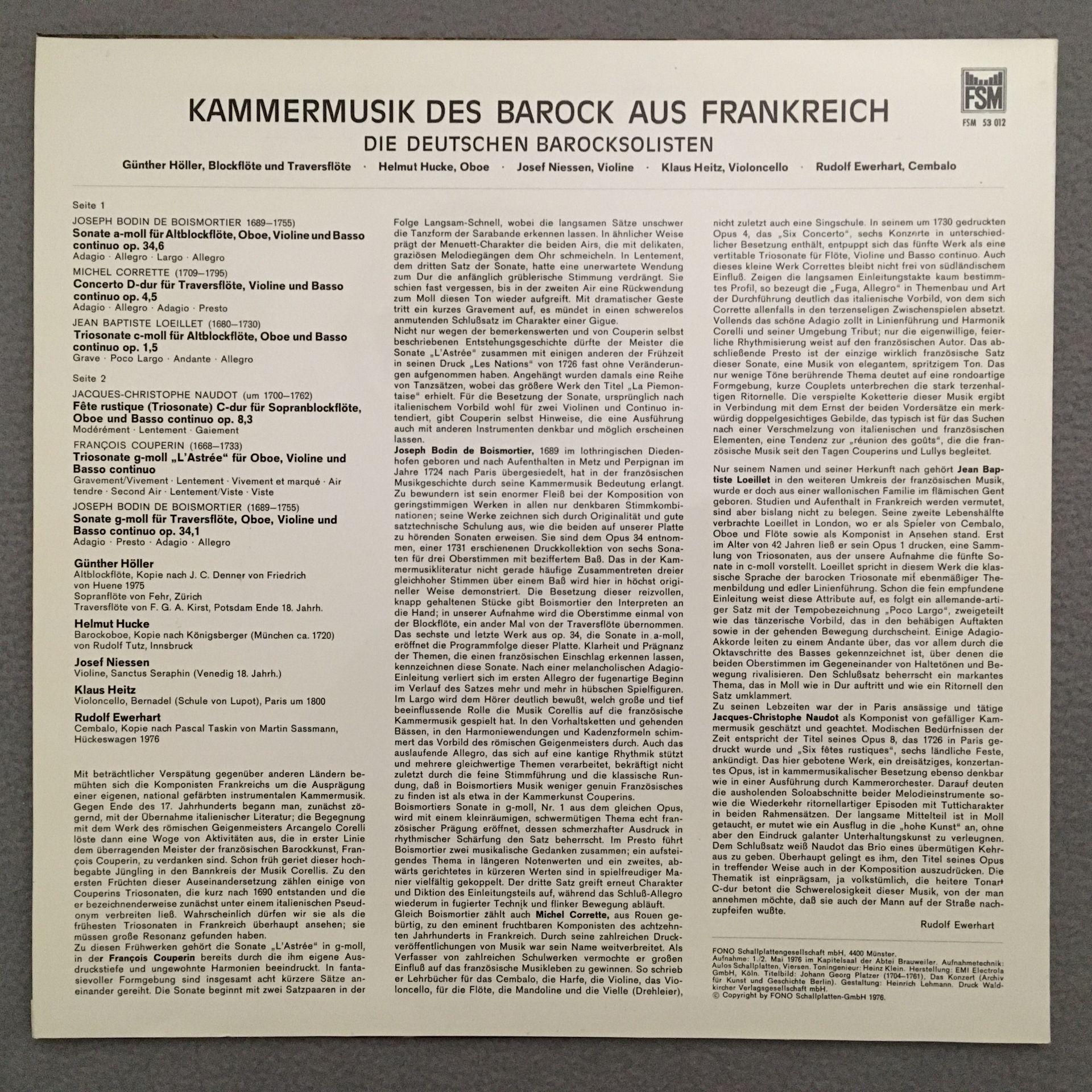 K223 Baroque Chamber Music France Höller Hucke Heitz Niessen FSM 53 012 Stereo