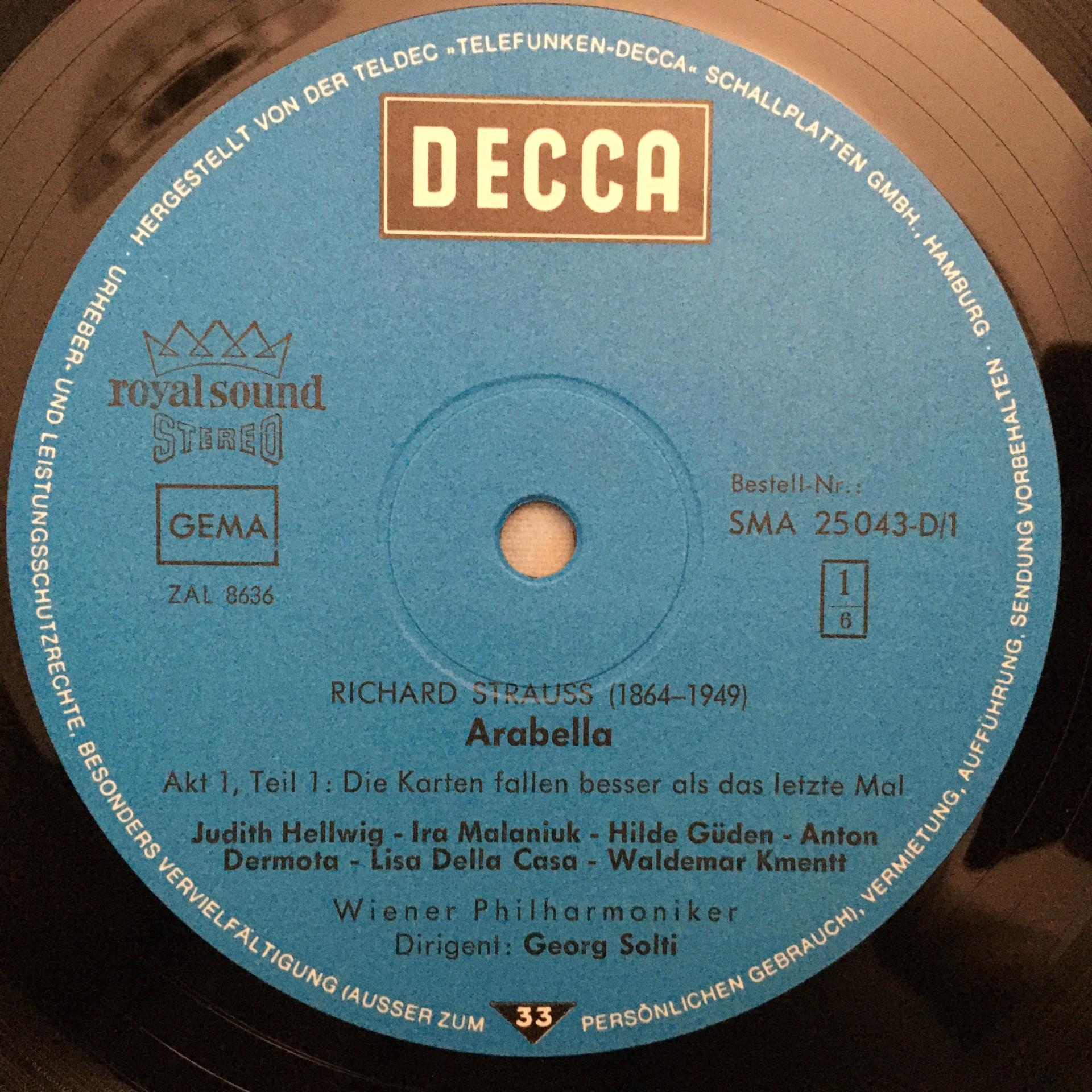 C828 R. Strauss Arabella Della Casa Solti VPO 3LP DECCA SMA 25 043-D/1-3 Stereo