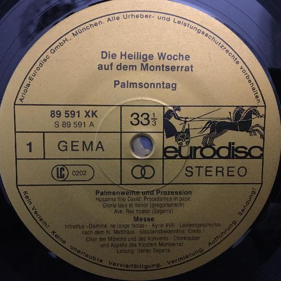 C829 Sacred Week Montserrat Capella Segarra 4LP Eurodisc 89 595 XFK Stereo