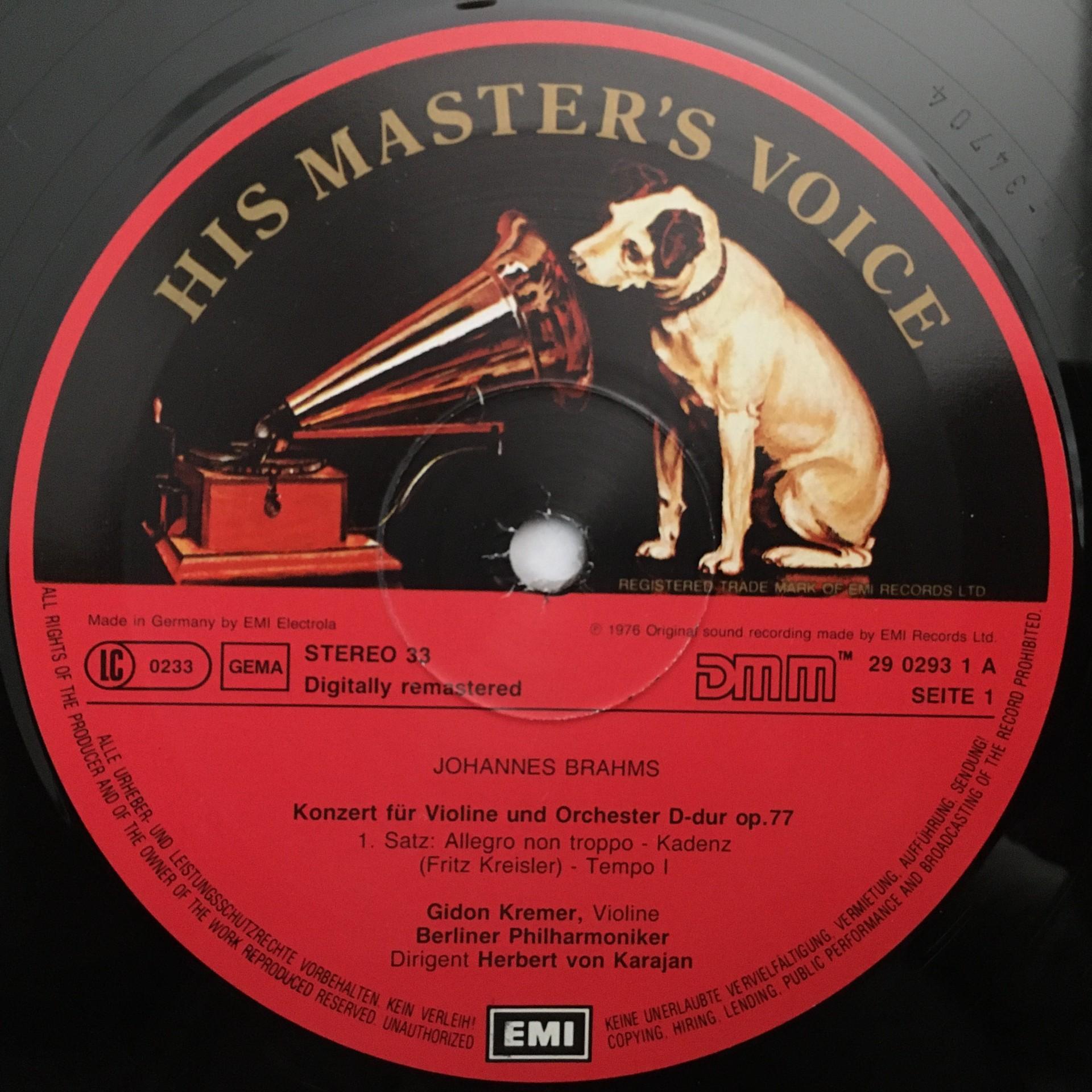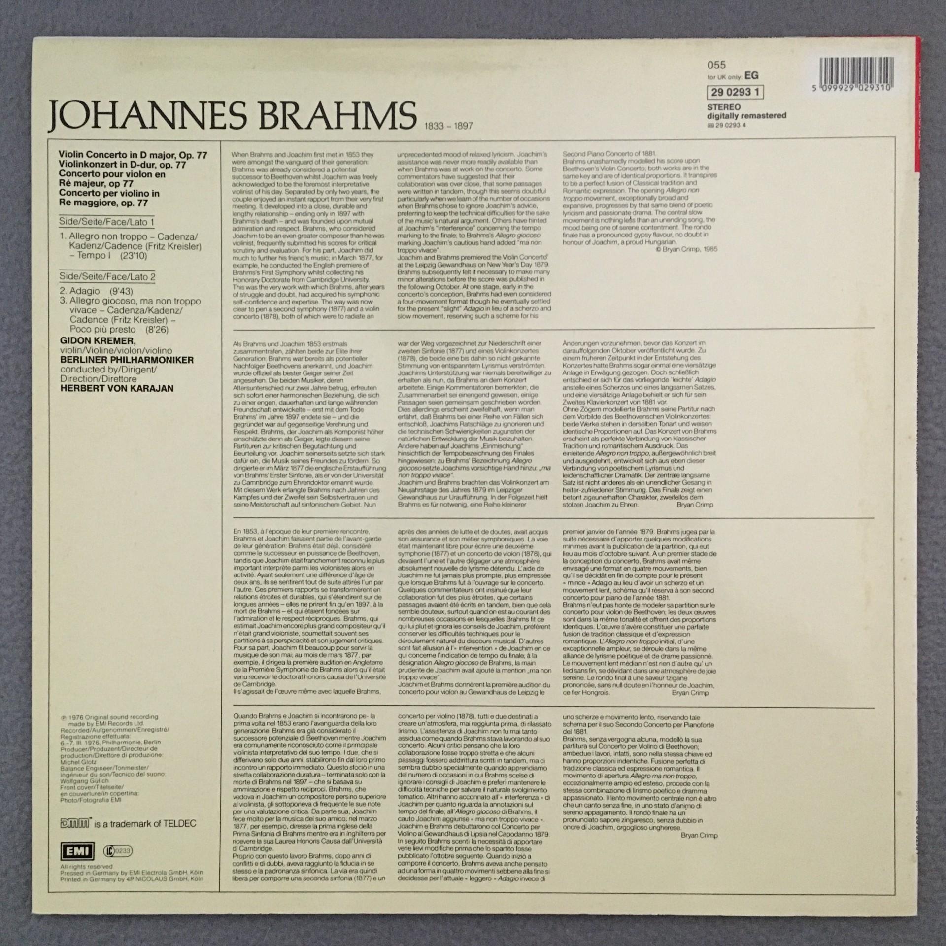 K247 Brahms Violin Concerto Kremer Karajan BPO EMI 055 29 0293 1 Digital Stereo