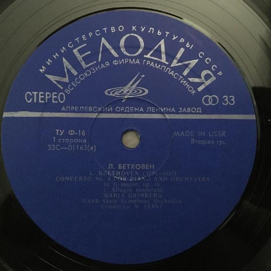 K249 Beethoven Piano Concerto No.4 Grinberg Järvi Melodiya C 01163-4 Stereo
