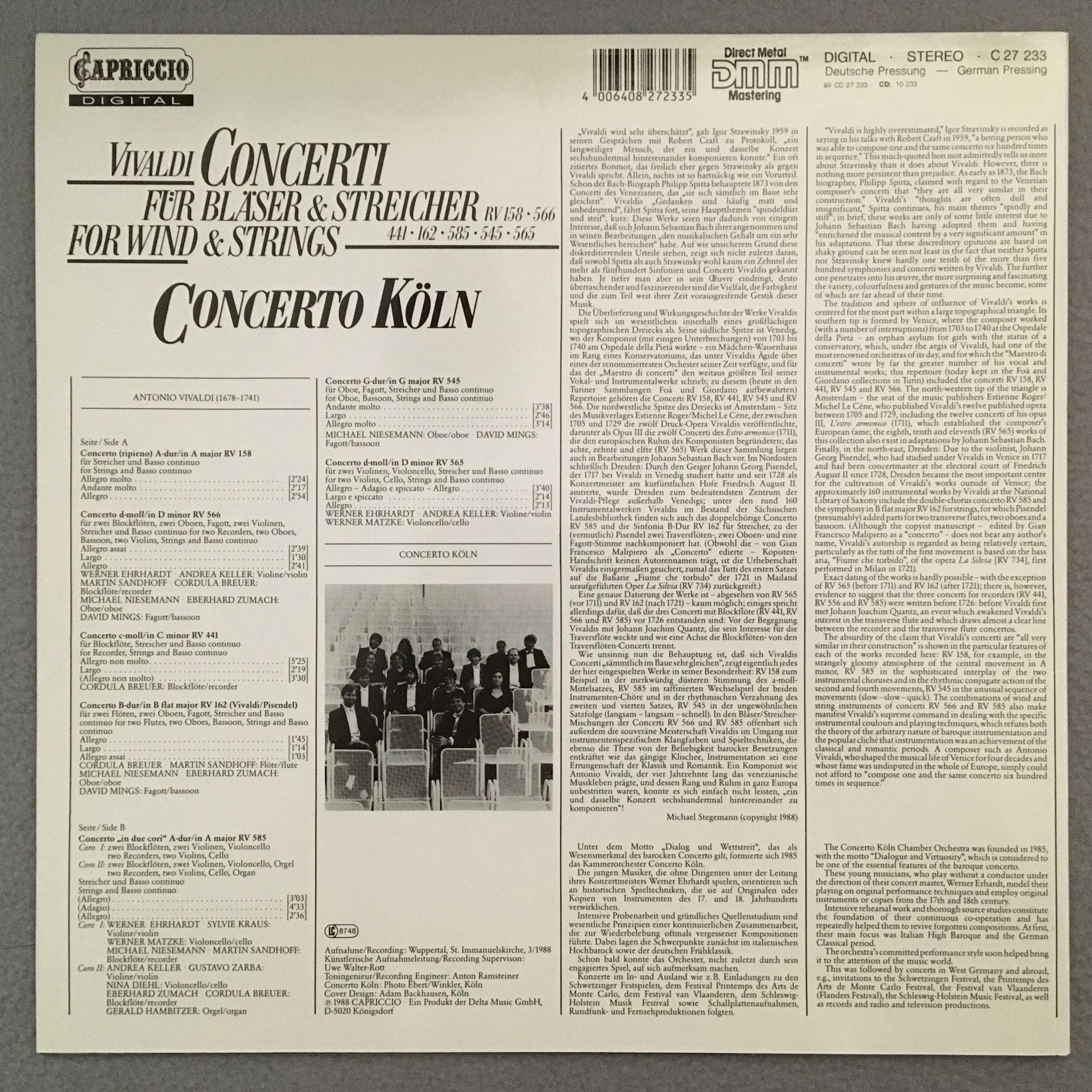 K253 Vivaldi Concertos for Wind & Strings Concerto Köln Capriccio C 27 233 Digit