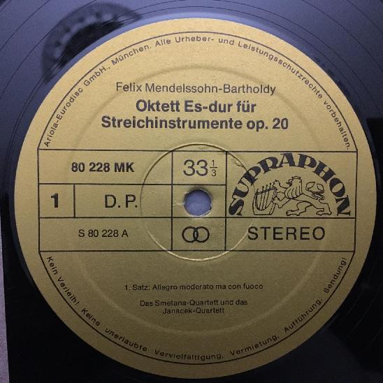 K273 Mendelssohn Octet Smetana Janacek Quartet Supraphon 80 228 PK Stereo