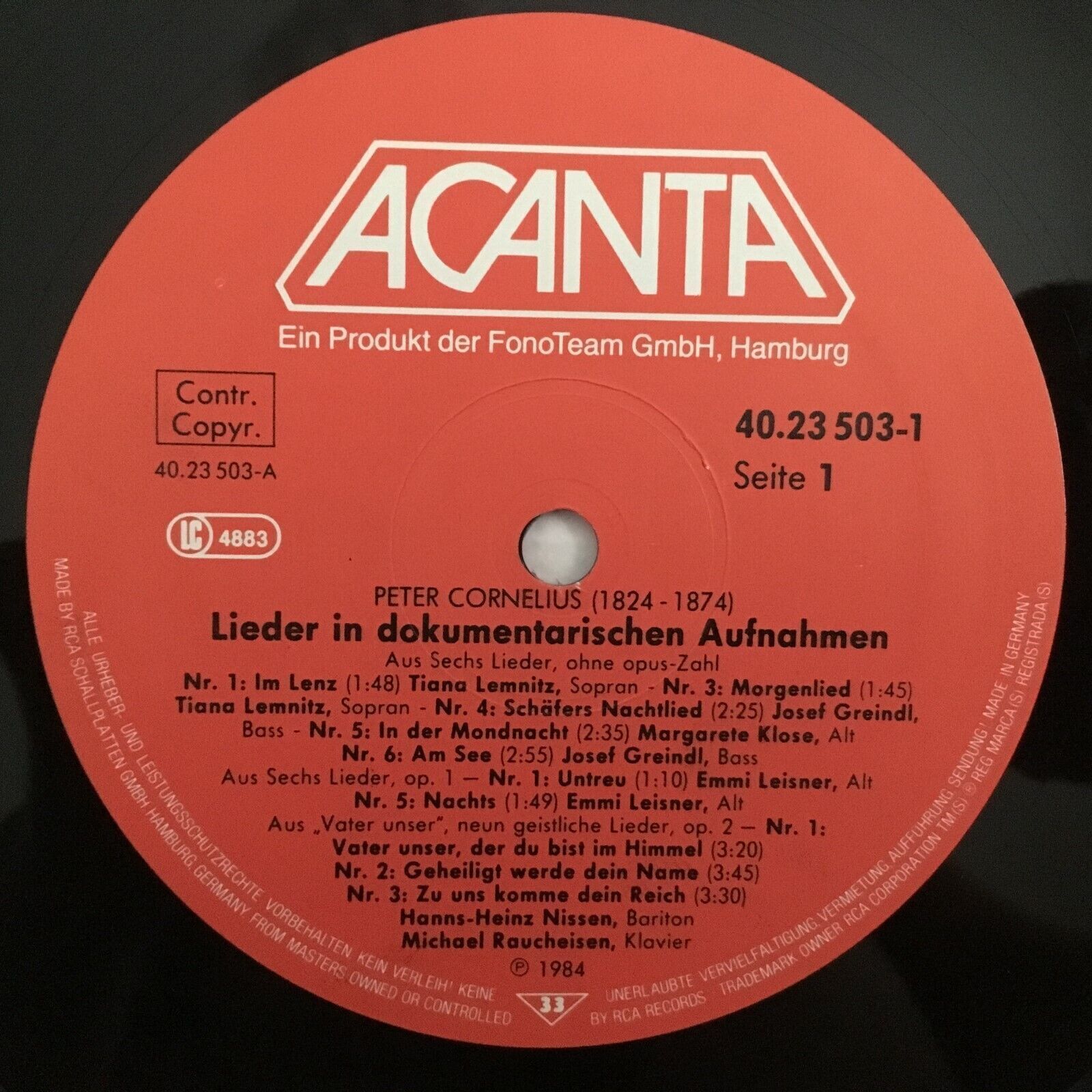 G265 Peter Cornelius Songs Schwarzkopf Raucheisen 3LP Acanta 40.23503 EX Stereo