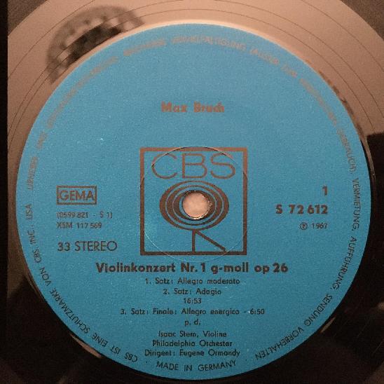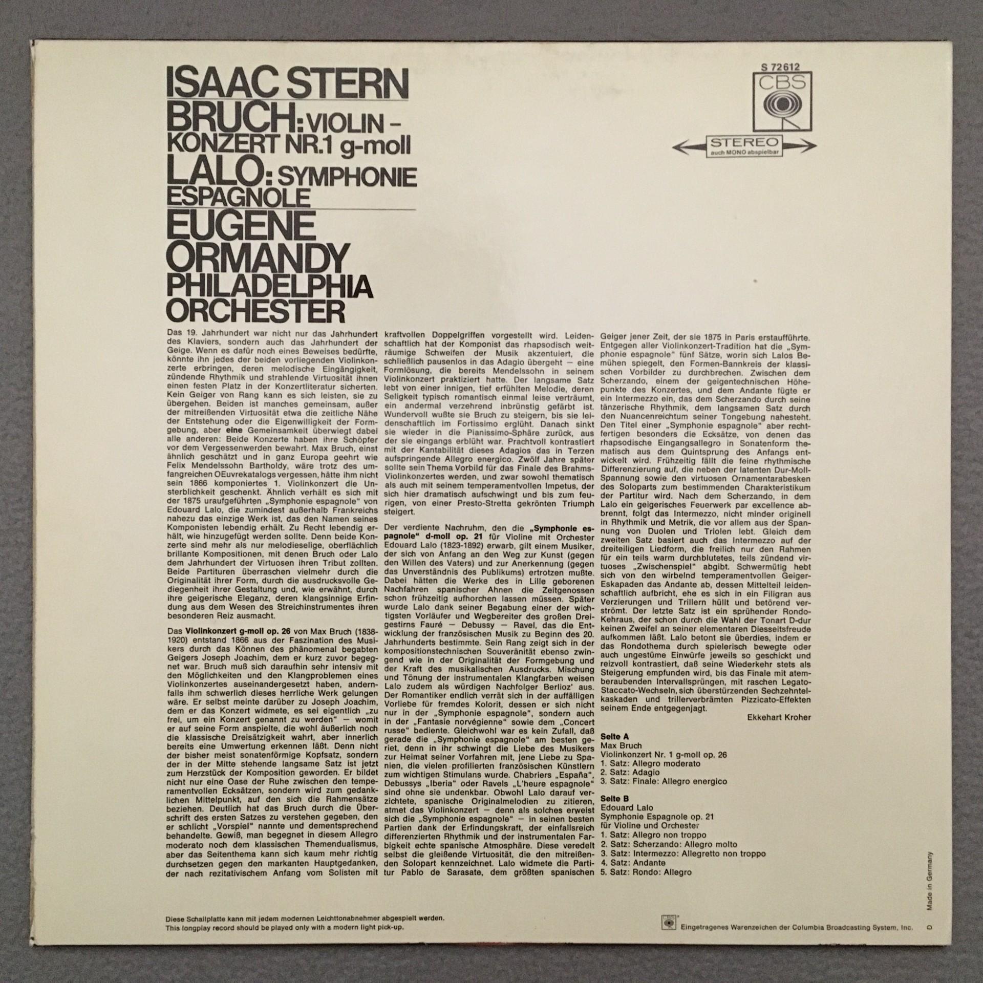 K291 Bruch Violin Concerto No.1 Lalo Symphony Stern Ormandy CBS S 72 612 Stereo
